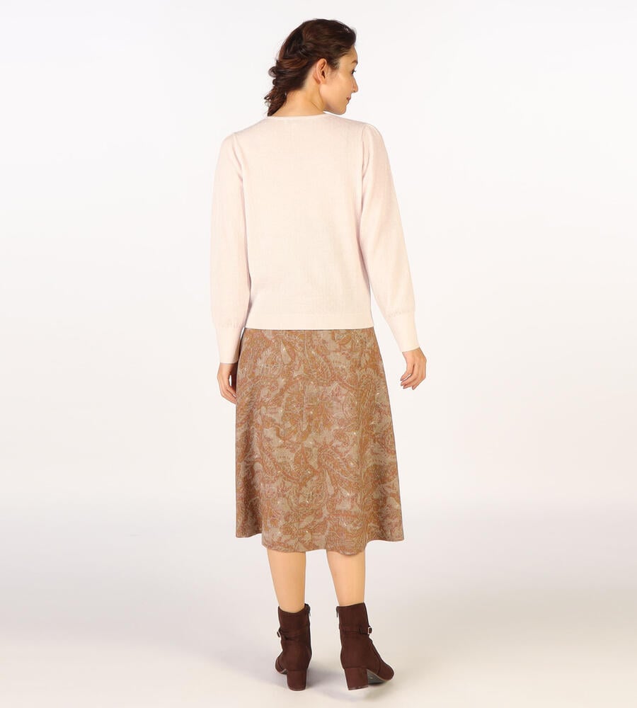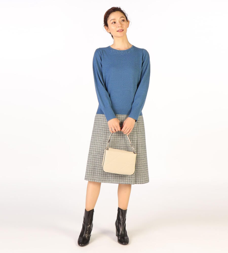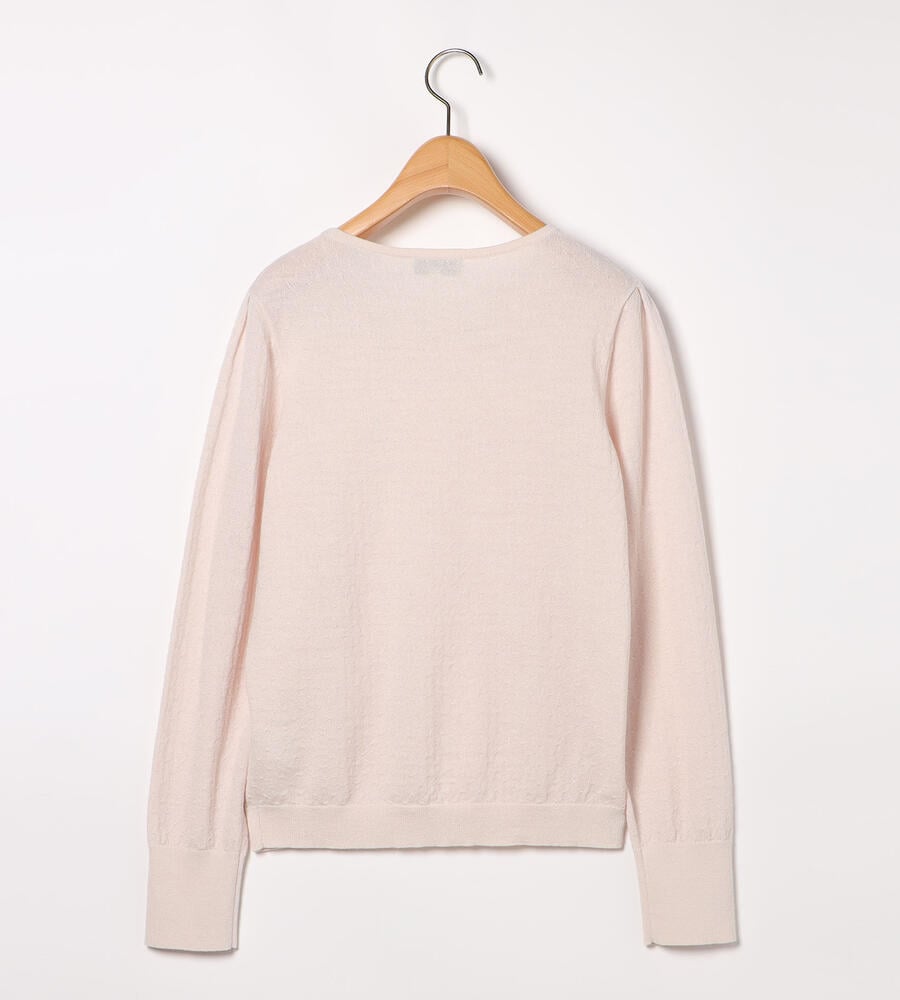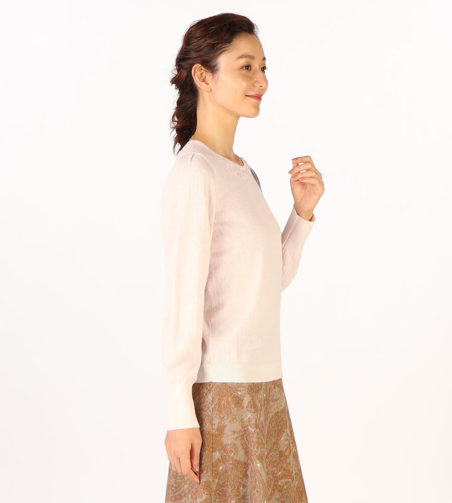 首もとに可憐なフラワーモチーフを同色でさりげなくあしらったニットトップス。シンプルな中にも愛らしいエッセンスをプラスし、洗練された大人の甘さを取り入れたアイテムです。コンパクトなシルエットはボトムスと合わせやすく、上品に着こなしていただけます。