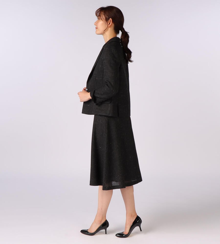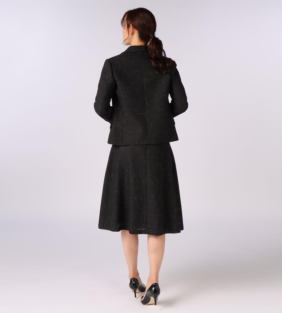 Aラインのフレアーシルエットが綺麗なウールリネンのスカート。背面にファスナーが施されており、着脱が可能です。ジャケットはもちろんのこと、ブラウスやシャツ合わせともおすすめです。膝下の丈で上品なスタイリングが楽しめます。同素材のジャケットと合わせて、セットアップとしての着こなしに活躍します。
