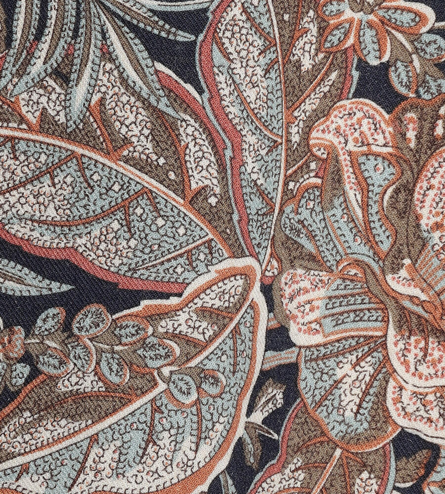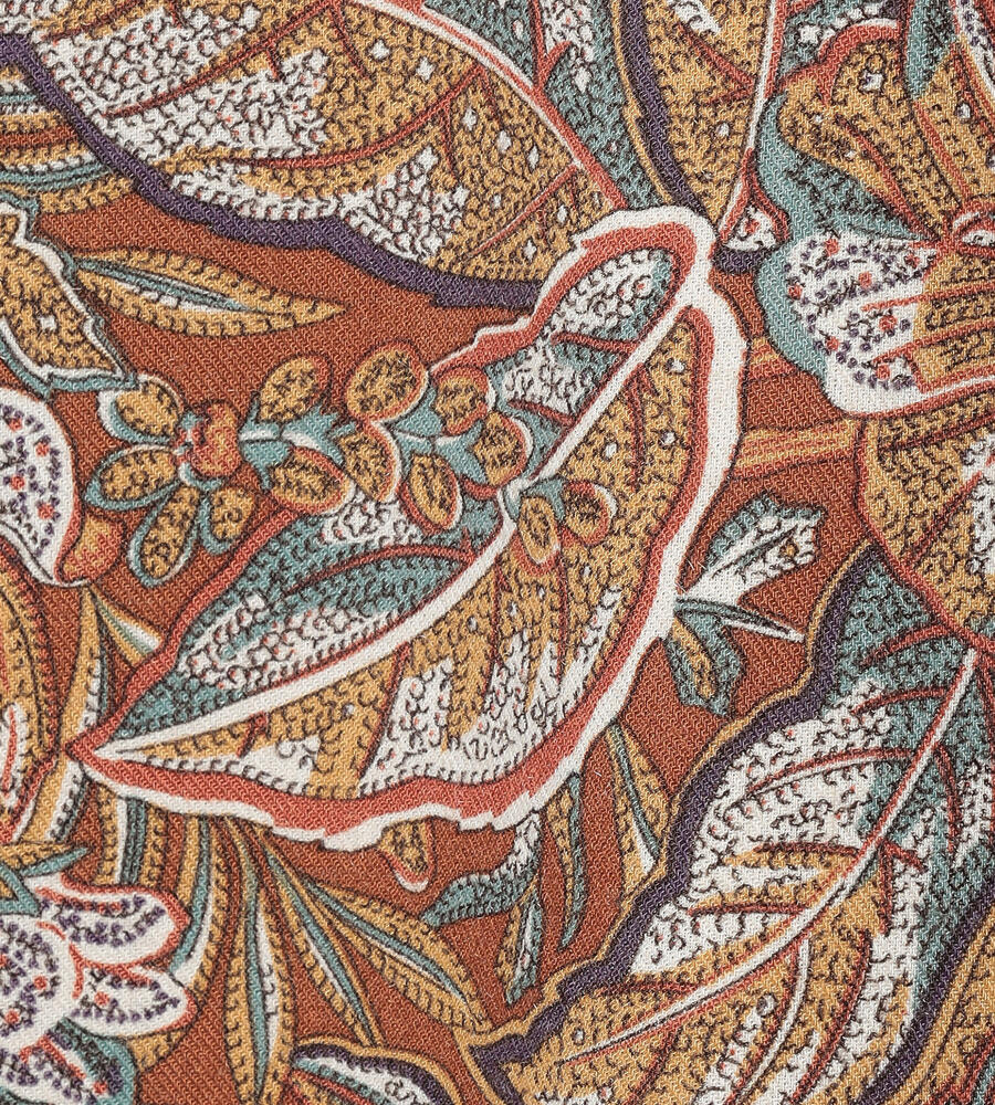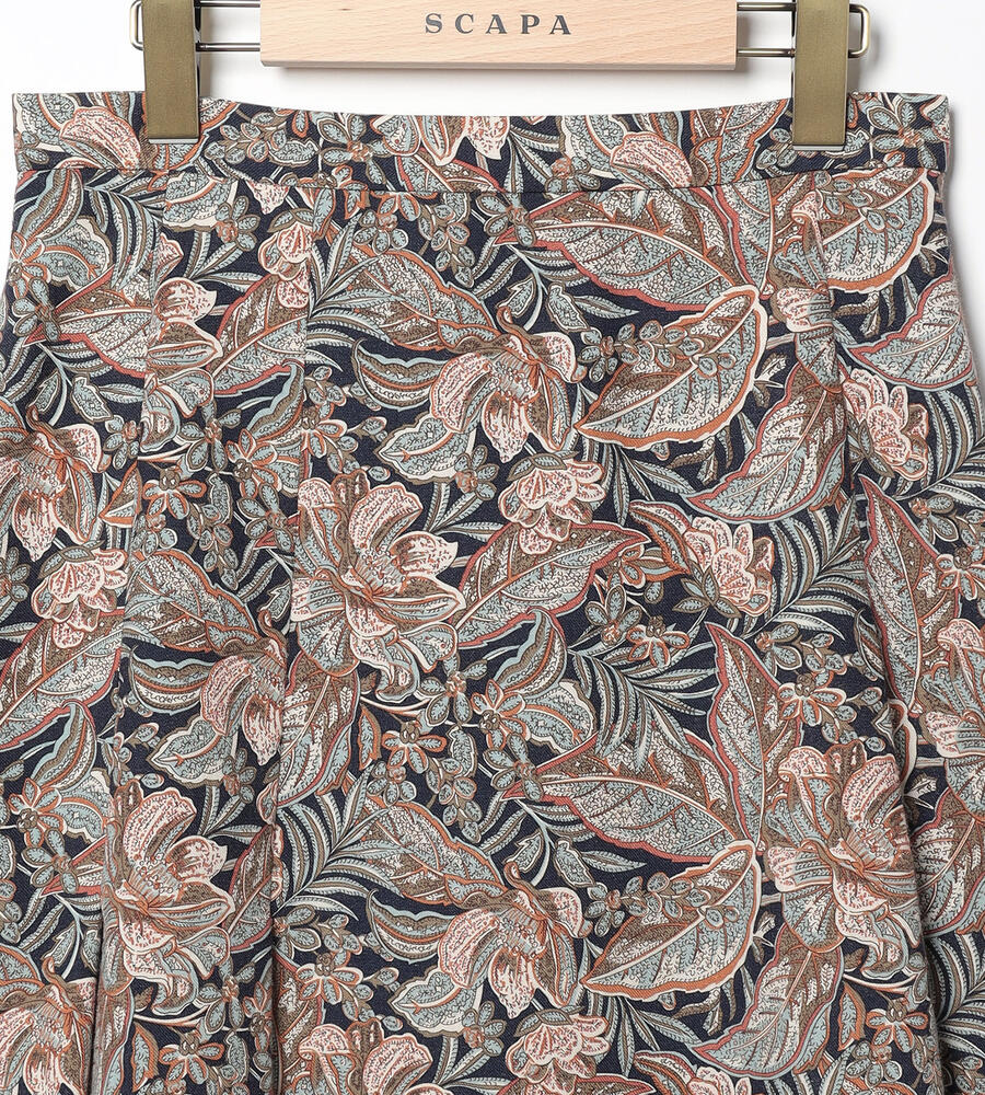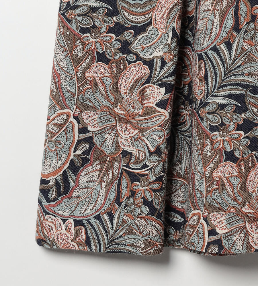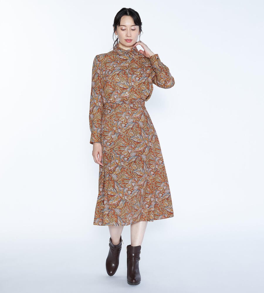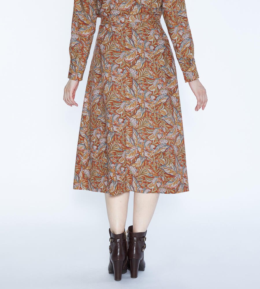 ポリエステルをベースにウールを織り交ぜた、上質な素材を用いたスカートです。落ち着いたトーンのペーズリー柄を載せて、オリエンタルな空気感に仕上げています。優雅に揺れるフレアで、着こなしの品位をキープ。膝が隠れる程度の着丈は、秋冬の淑女の装いにぴったりです。ウエストをきちんとマークできるのもポイント。