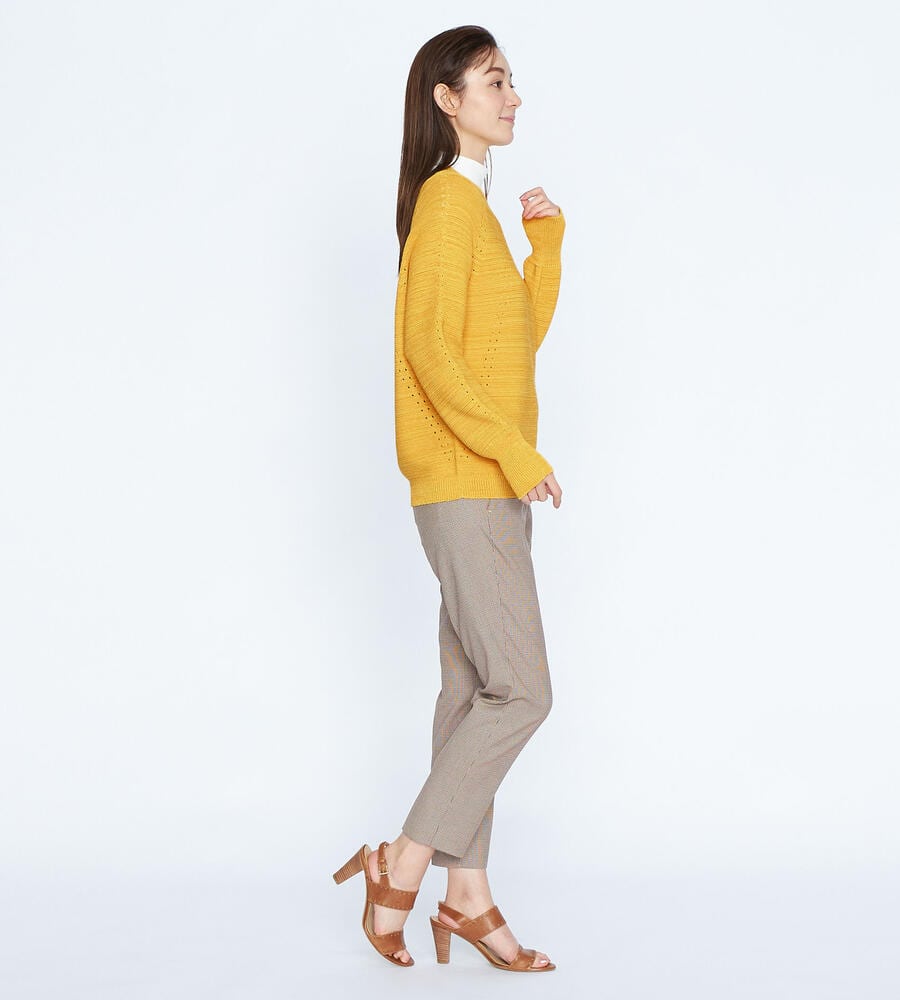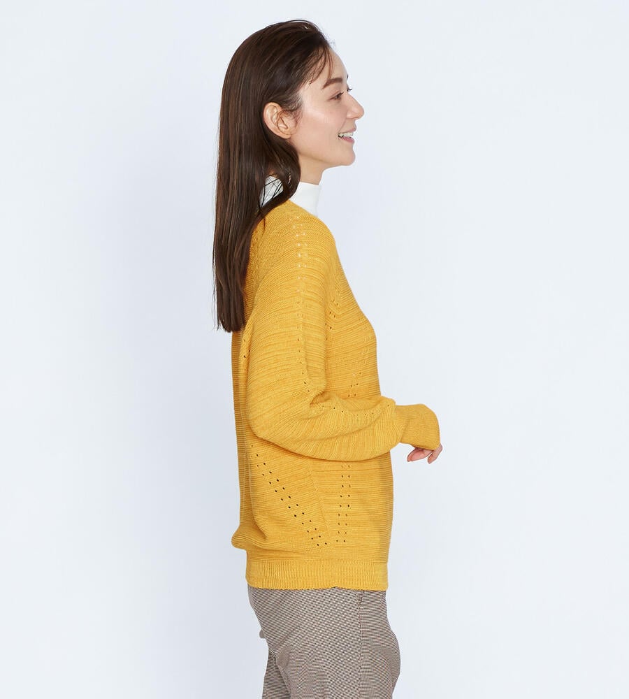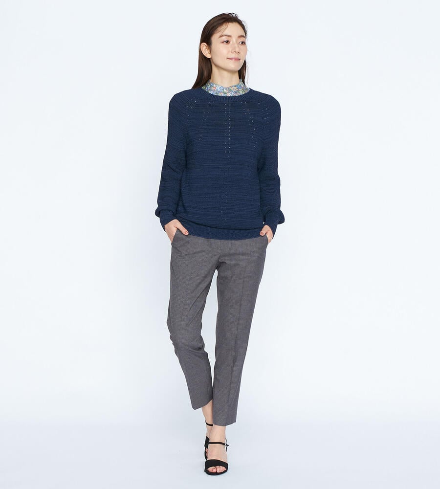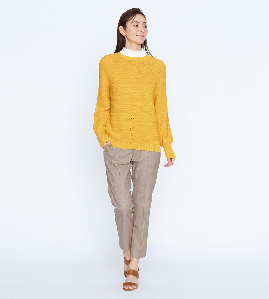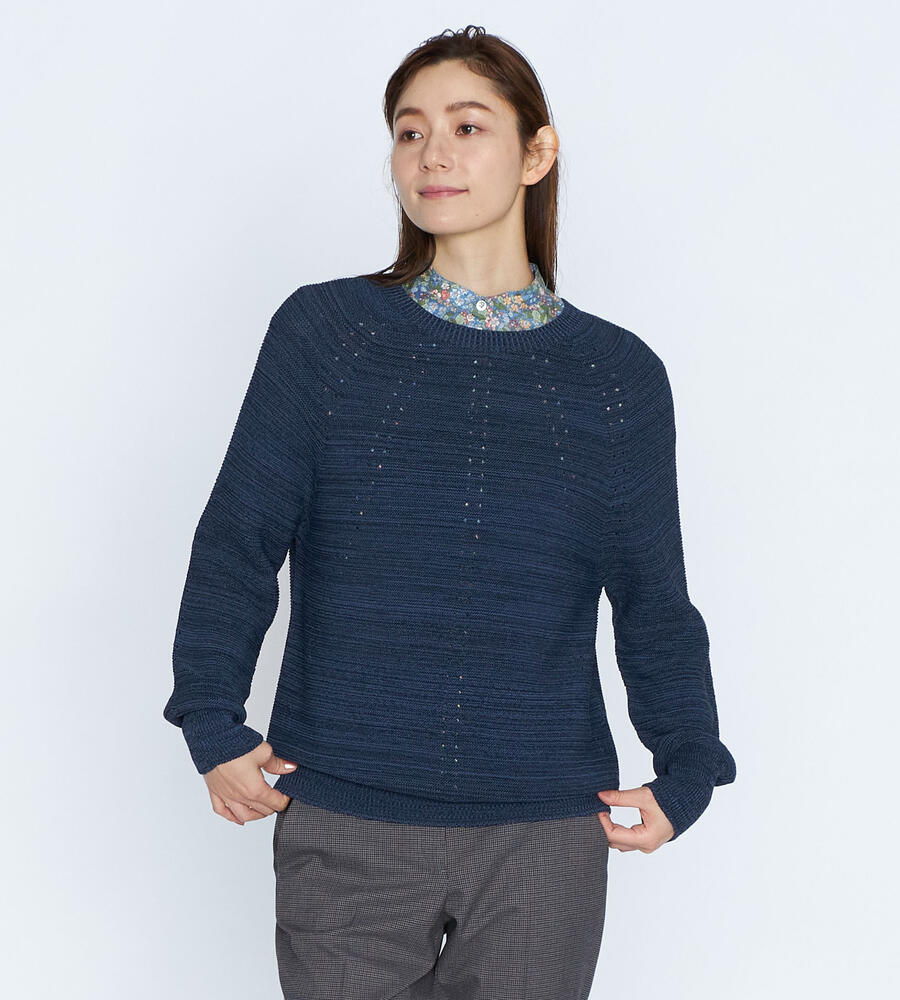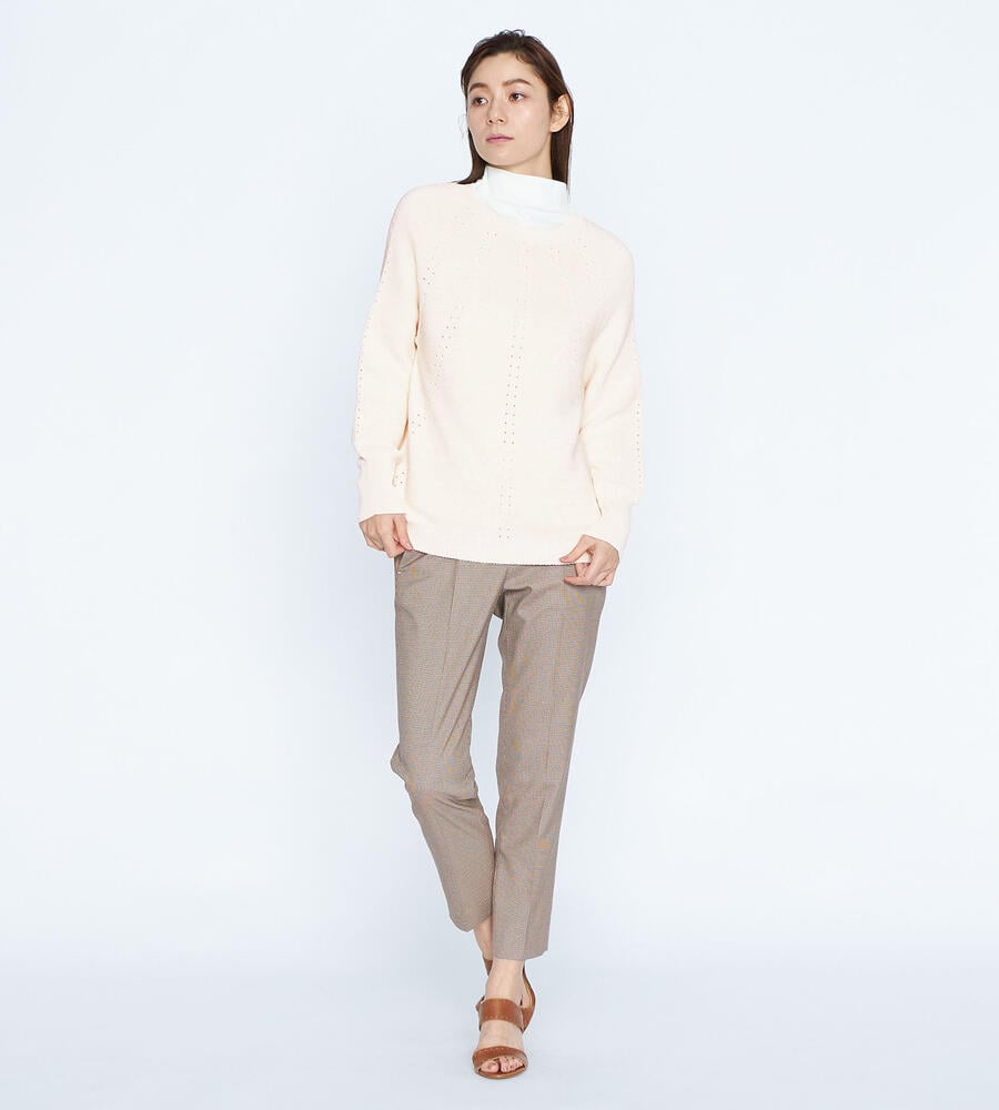 ニュアンスカラーが美しい長袖ニット。袖口と裾はシルエットにメリハリを与えるリブ編み。一部ドットの透かし編みを取り入れた、軽やかなムードのデザインも魅力。コーディネート次第で、カジュアルにもシックにも着こなせるシンプルかつエレガントな一枚。ボトムを選ばず毎日のスタイリングで活躍します。