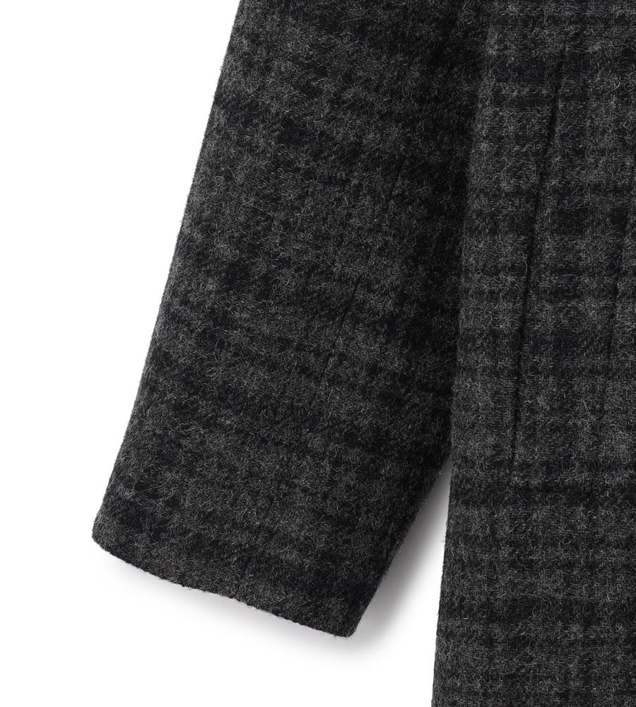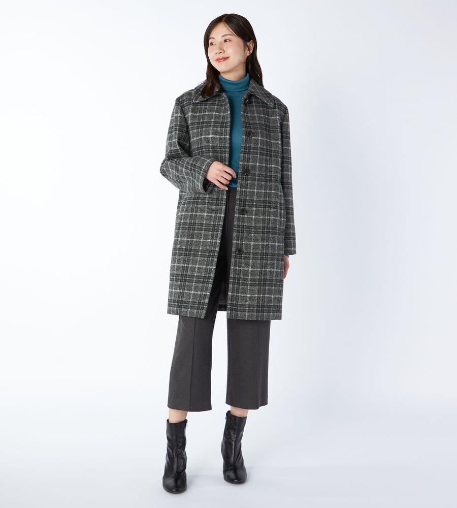 スコットランド地方のハイランドチェック柄がクラシカルなムードのコート。毛100%のあたたかな肌触りの生地。暗く、重くなりがちな冬の着こなしにアクセントを与えてくれるデザイン。腰下まである少し長めの丈感、シングルボタンのエレガントなデザインディティール。オン・オフ問わず活躍するシックなアイテムです。