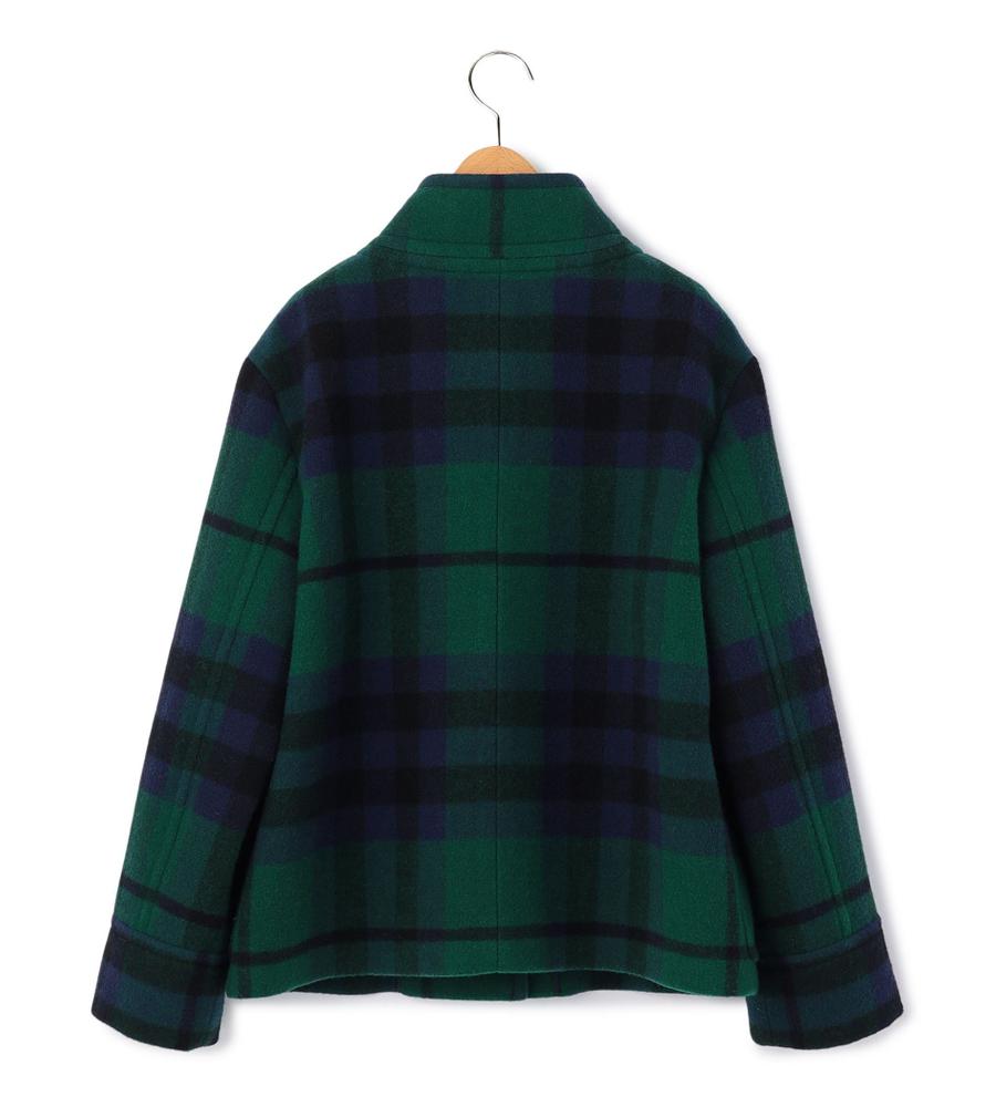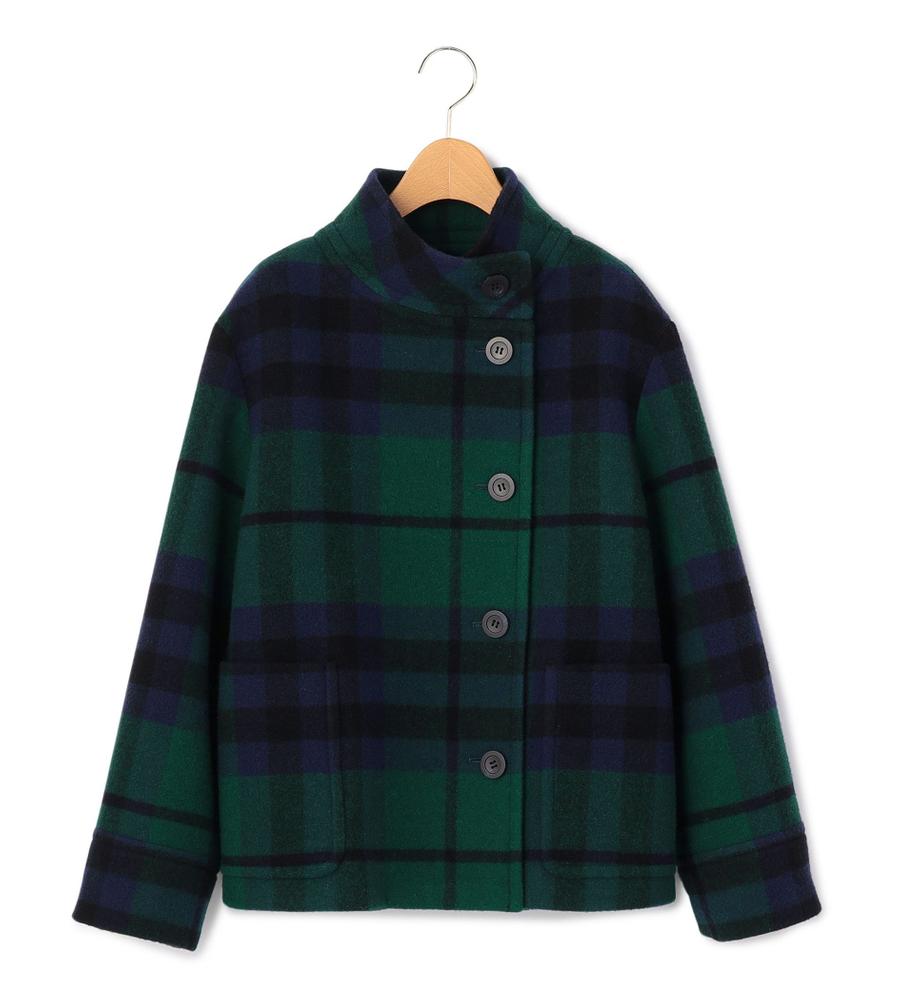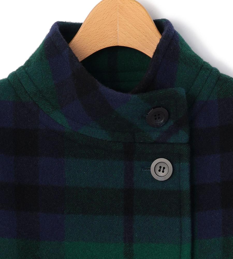 大きめの総チェック柄が印象的なコート。スタンドカラーと、アシンメトリーなフロントデザインがスタイリッシュなデザインディティール。様々なボトムとバランスよく着こなせる長すぎない腰下丈。便利なポケット付き。暗くなりがちな秋冬の着こなしに華やかなアクセントを与えてくれるアイテムです。