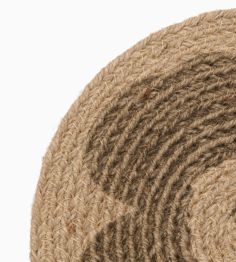 花をモチーフにしたUnikko(ウニッコ)柄が大きく一輪あしらわれたサークルプレイスマット。植物繊維を使用し、心地良さを感じるナチュラルなブラウン系カラーで仕上げています。