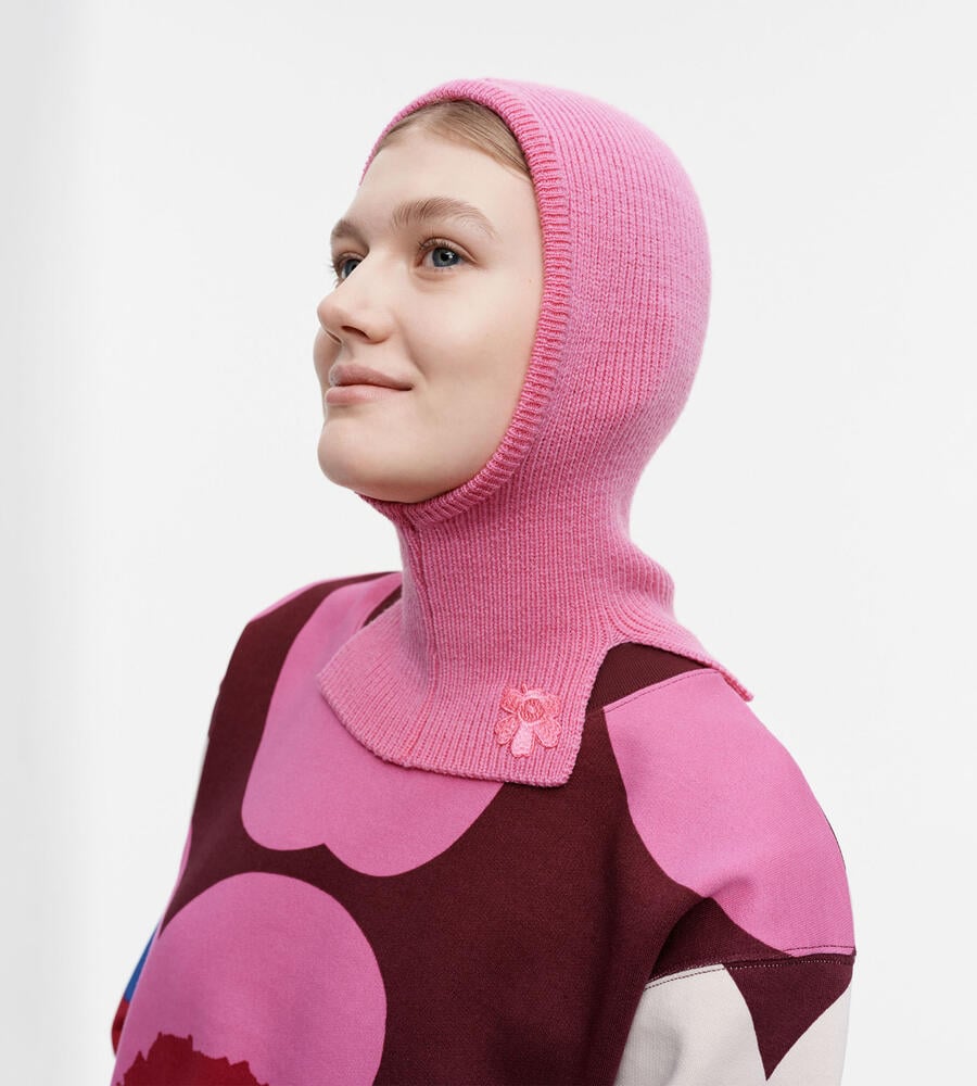 シンプルなソリッドのバラクラバ。程良くフィット感のあるニット素材で、普段の着こなしに差を付けます。頭から襟元までしっかりと防寒対策できるのが高ポイント。Maija Isolaによる「Unikko(ウニッコ)」柄が、さりげなく主張します。合わせやすいベースカラーとアクセントカラーをご用意。