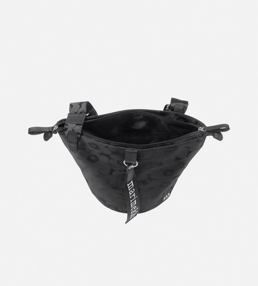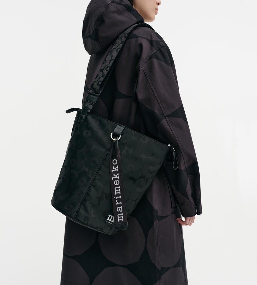 Unikkoパターンのジャガード織でモードシックな雰囲気に仕上げたオールデイバケットショルダーバッグ。メインコンパートメントはファスナー仕様。間口がマグネット開閉のスリットポケットも備えたデザイン。ショルダーストラップは長さの調整が可能です。Marimekkoのロゴがあしらわれたストラップもワンポイントになっています。