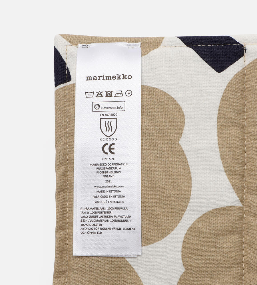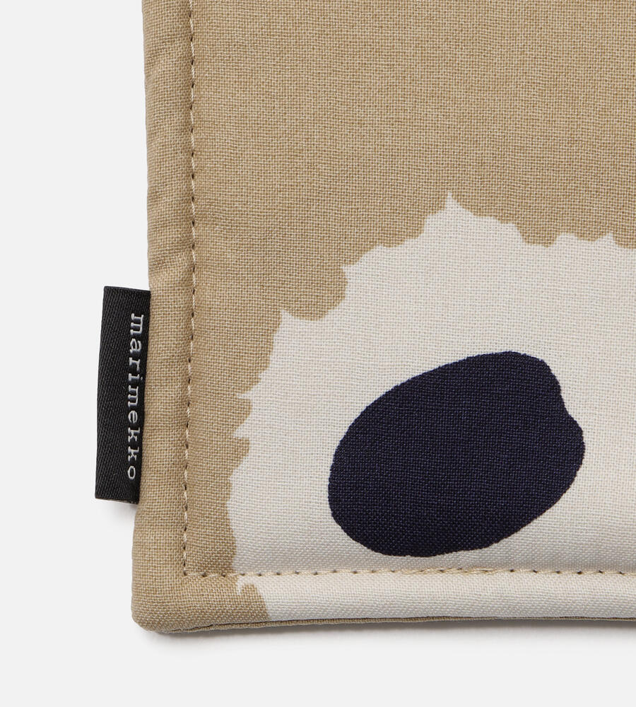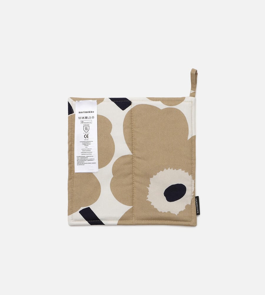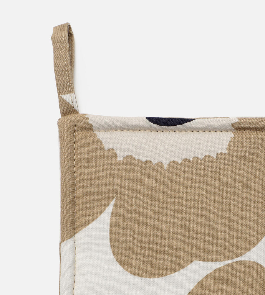 ケシの花をモチーフとしたUnikko柄をナチュラルなカラーで仕上げたポットホルダー。鍋つかみとしてはもちろん、オーブン料理をのせる敷きものとしても活躍。壁掛けに便利なループつきで、キッチンにも溶け込むやわらかな印象のデザインです。