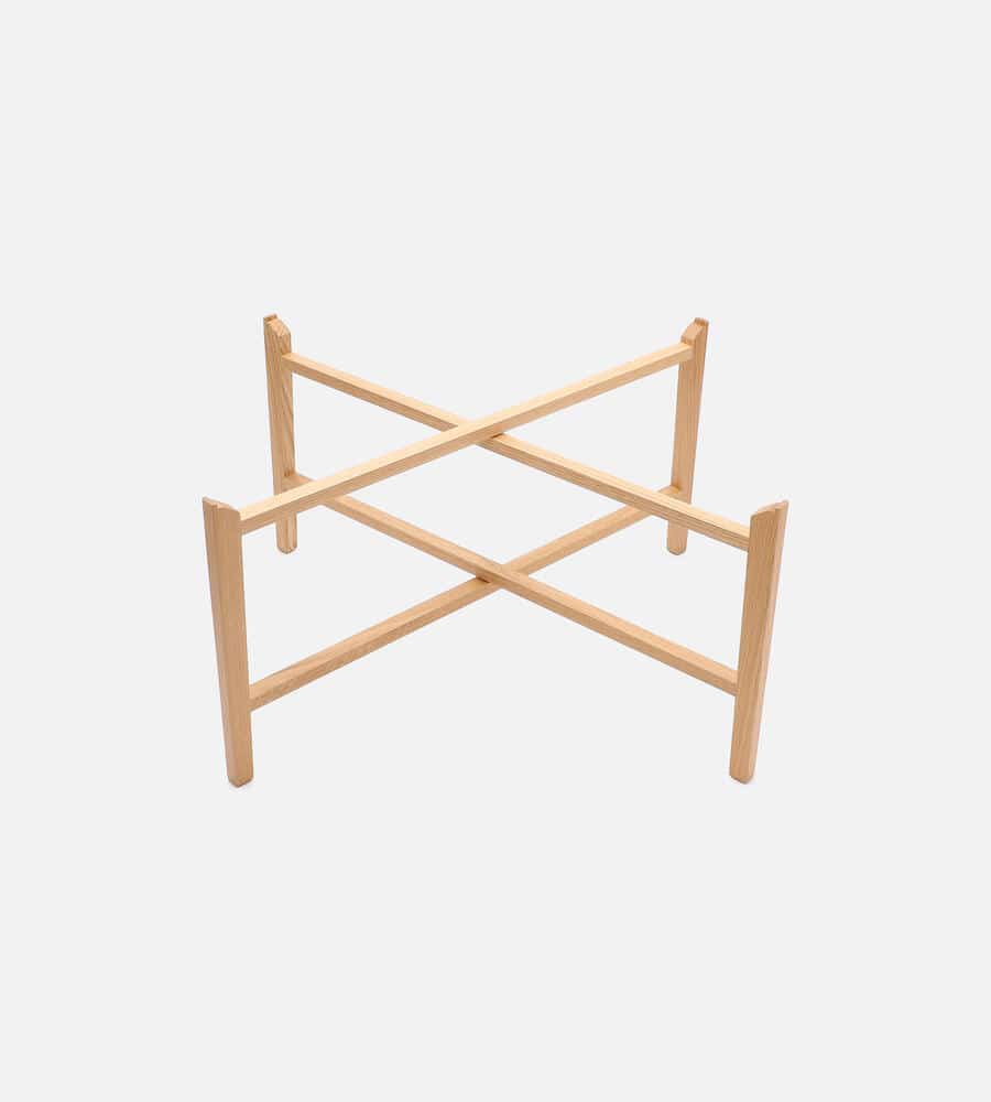 天然木のナチュラルなムードのトレイスタンド。別売りのトレイを合わせて、サイドテーブルやディスプレイとして使用可能。簡単に組み立てられて、トレイを変えれば異なる雰囲気が楽しめる便利な仕様。床を傷つけない保護材付きで、機能性も抜群。インテリアのに馴染む、美しい木目が特徴のアイテムです。