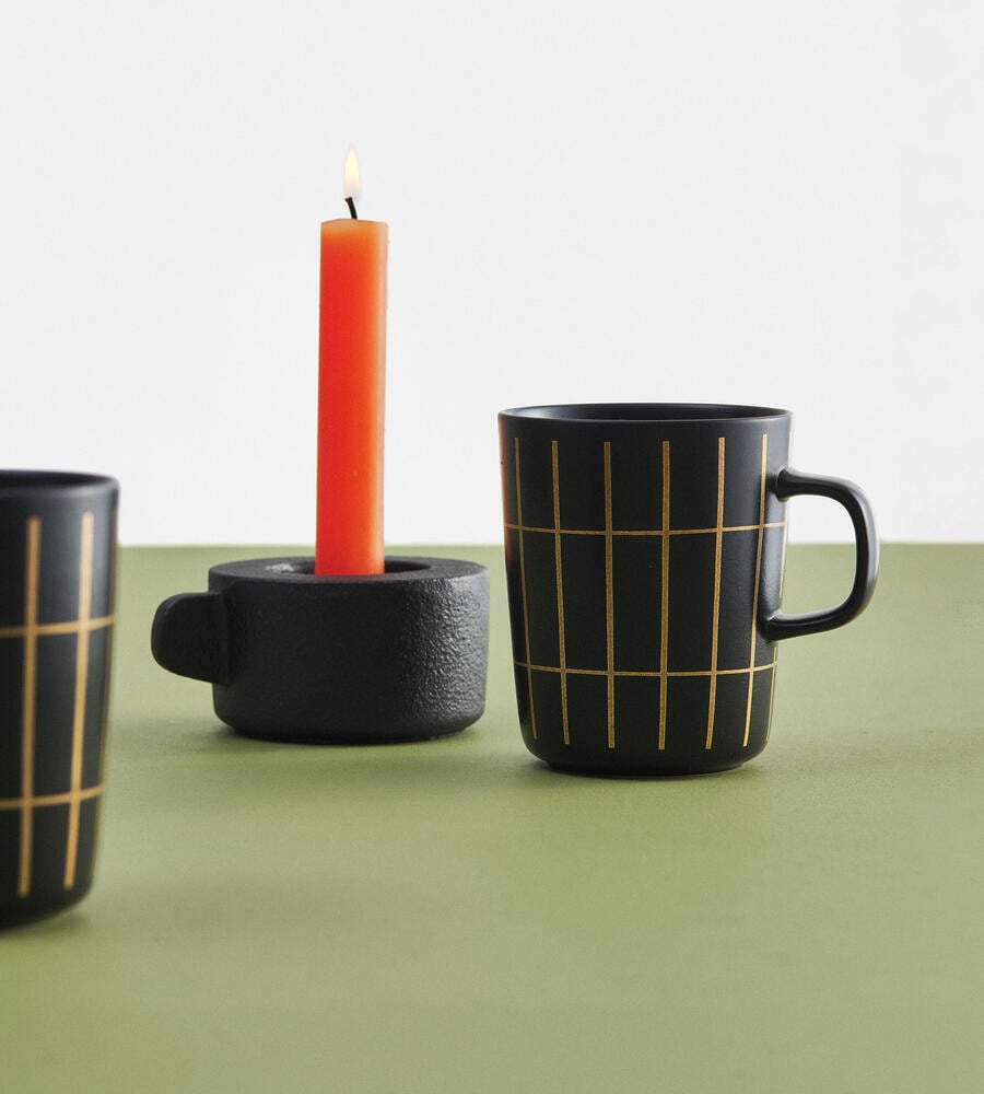 レンガからインスピレーションを得てデザインされたTiiliskiviパターンのコーヒーカップ。グラフィカルな格子柄をメタリックなゴールドで表現することで、モダンリュクスな雰囲気に。コーヒーや紅茶を淹れて、お家でゆったりカフェ気分を満喫いただけます。