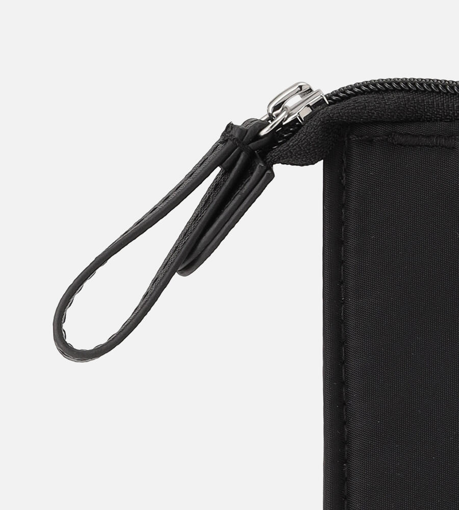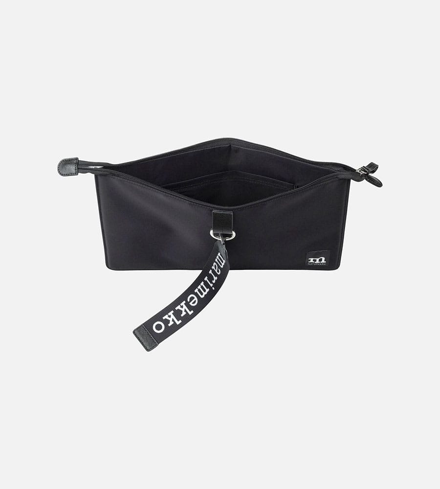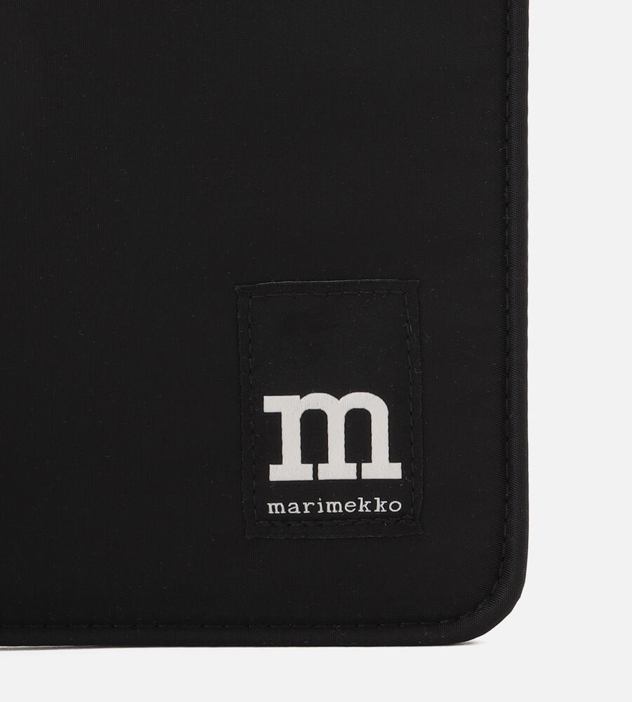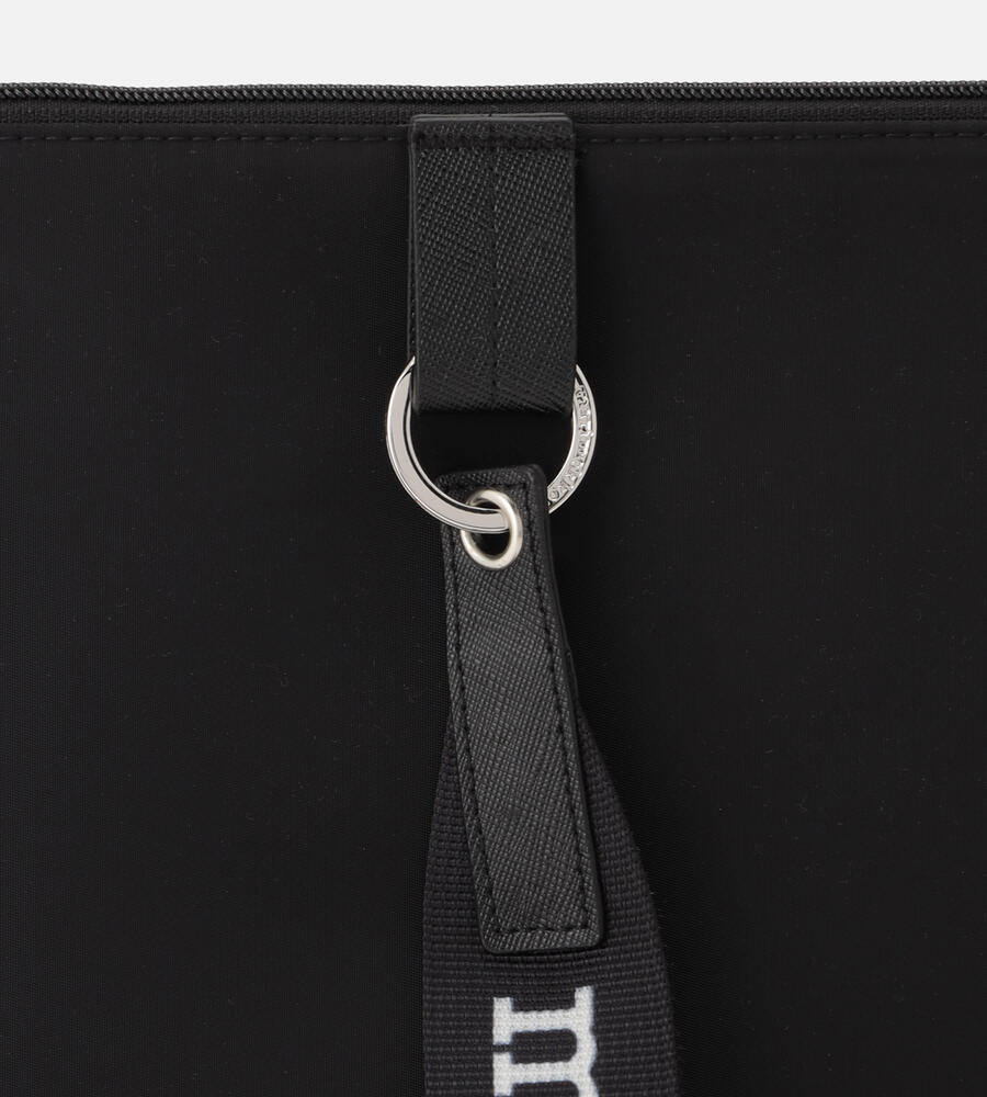 モノトーンのシンプルなラップトップスリーブ(13インチ)。移動時などにパソコンを収納し、保護しながらスタイリッシュに持ち運べる便利なアイテム。大きなロゴ入りストラップと、ロゴタグがデザインアクセント。内側にはポケット付きで、使い勝手も抜群です。