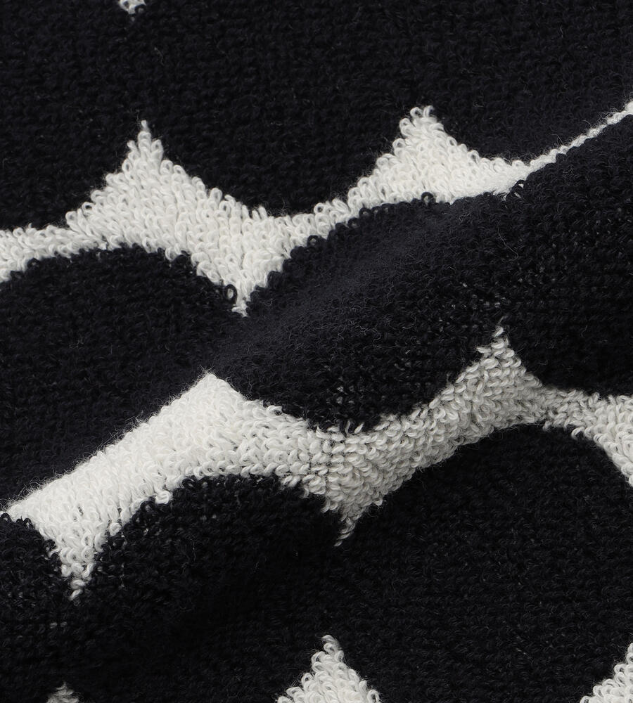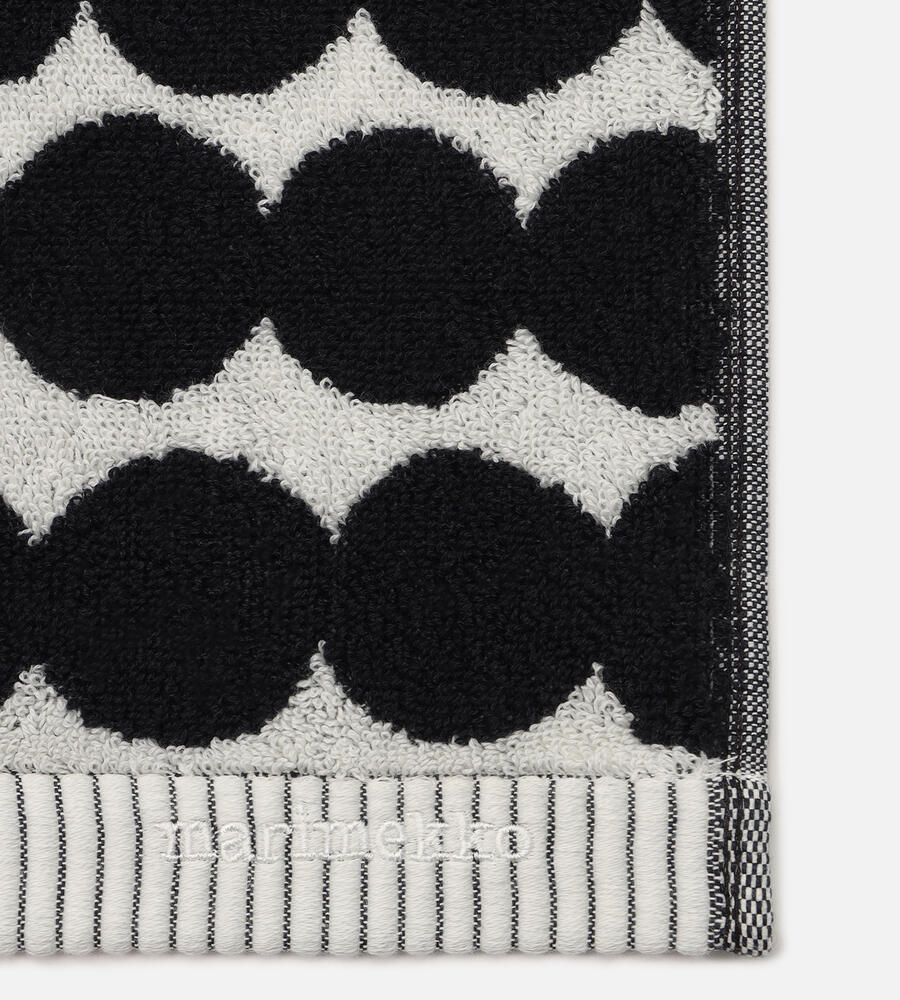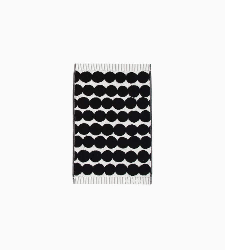 少しいびつなドットを連ねて、笑みを誘う可愛いパターンに仕上げたRasymatto柄のゲストタオルです。厚みがあり、ふっくらと膨らむ上質なパイル地を使用しており、水をしっかりと吸い込む素材です。手にも顔にも使いやすい、絶妙なサイジング。パウダールームのアクセントとしても活躍するアイテムです。