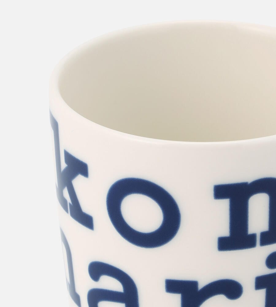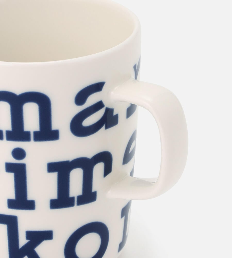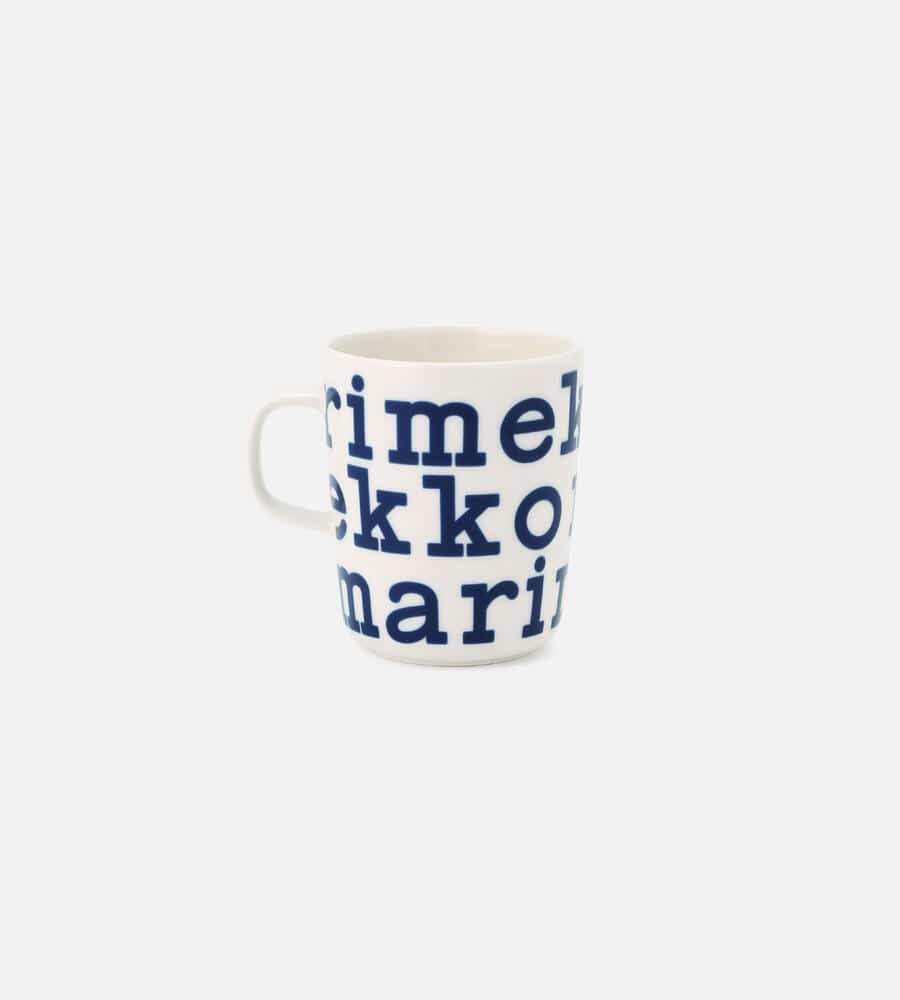 Marimekkoのロゴアルファベット柄がスタイリッシュなデザインのマグカップ。持ち手が小ぶりなシンプルで使いやすいフォルムもポイント。シックなデザインでインテリアに馴染みやすく、テーブルコーディネートのアクセントにぴったり。食洗機、オーブン、電子レンジ、冷凍対応で機能面も優秀でデイリーに活躍するアイテムです。
