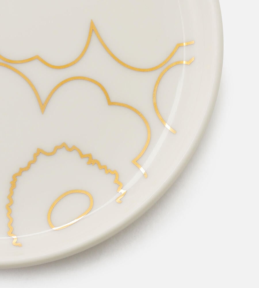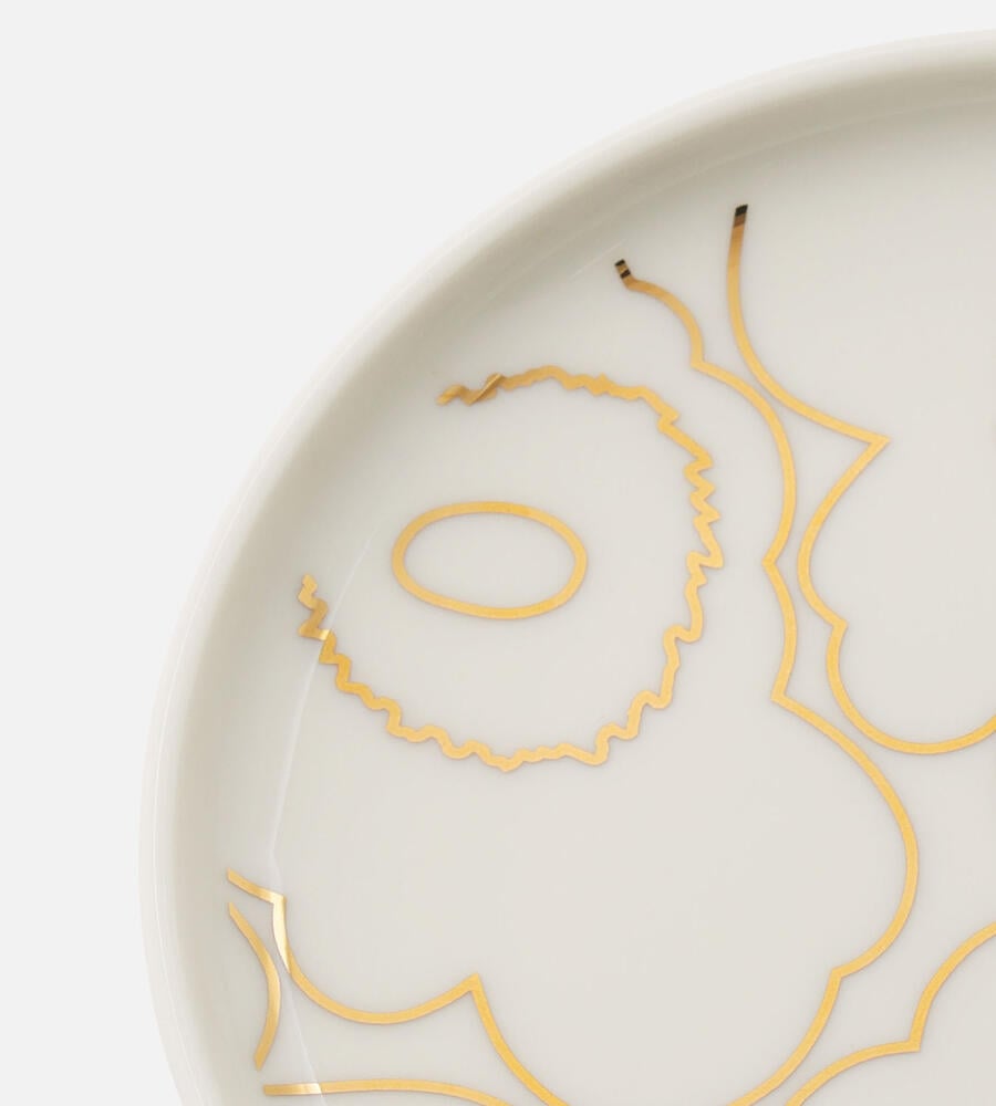 Marimekkoを代表するUnikko柄を大きく配したインパクトあるデザインのプレート(13.5cm)。フチが少し高い使いやすい丸型フォルム。Unikko柄のモチーフをラインで表現したシンプルモダンなデザインが魅力。テーブルコーディネートのスタイリッシュなアクセントになるアイテムです。