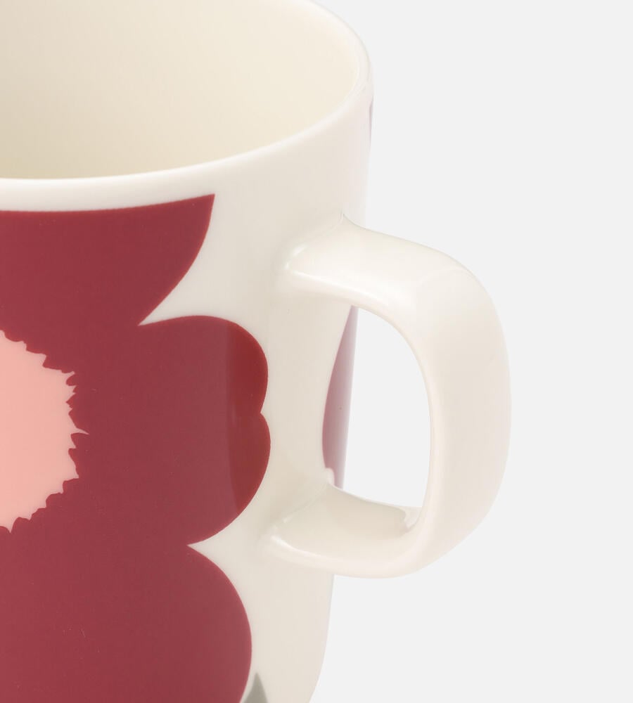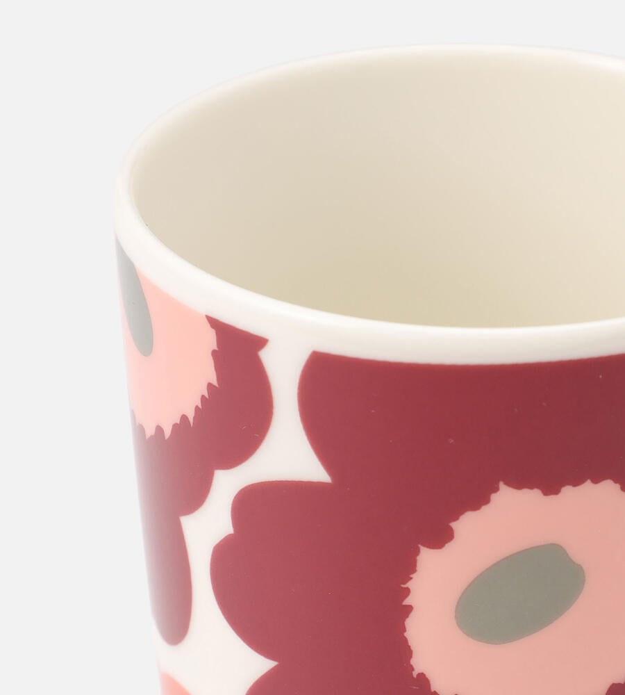 秋冬らしい、こっくりとした色味が印象的な「Unikko」柄のマグカップです。コーヒーや紅茶、ミルクなどを注いで、モーニングにランチ、ティータイムなど、さまざまなシーンで活躍します。縦長のすっきりとしたフォルムは、比較的場所を取らないのもポイント。掴みやすいコンパクトな持ち手が特徴です。