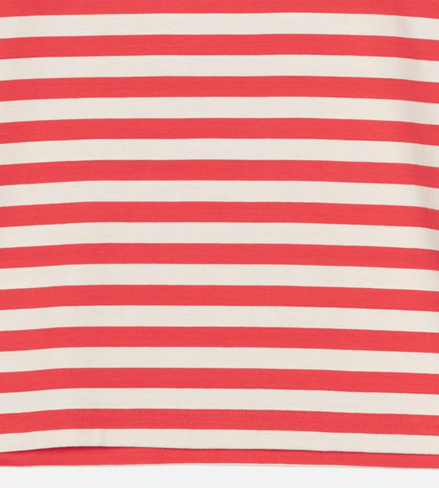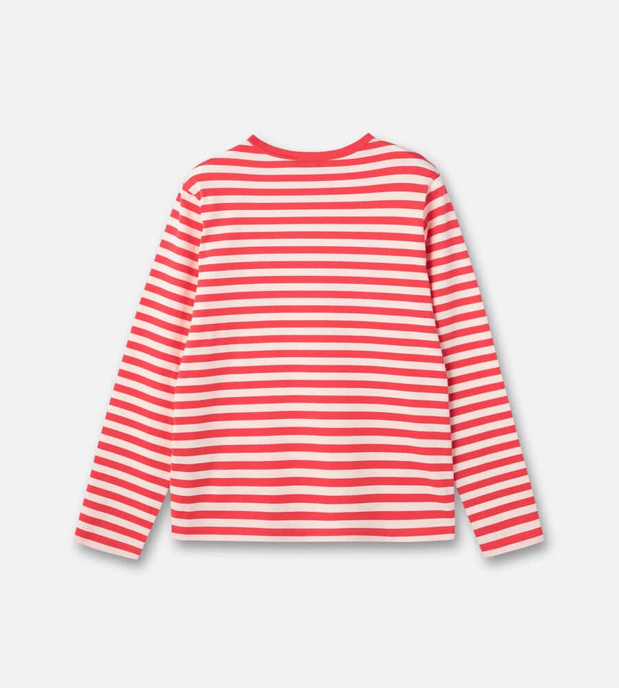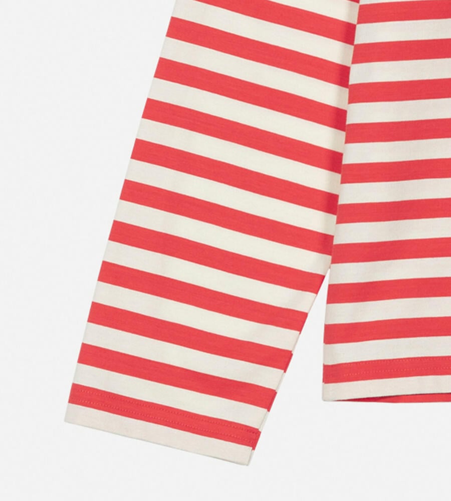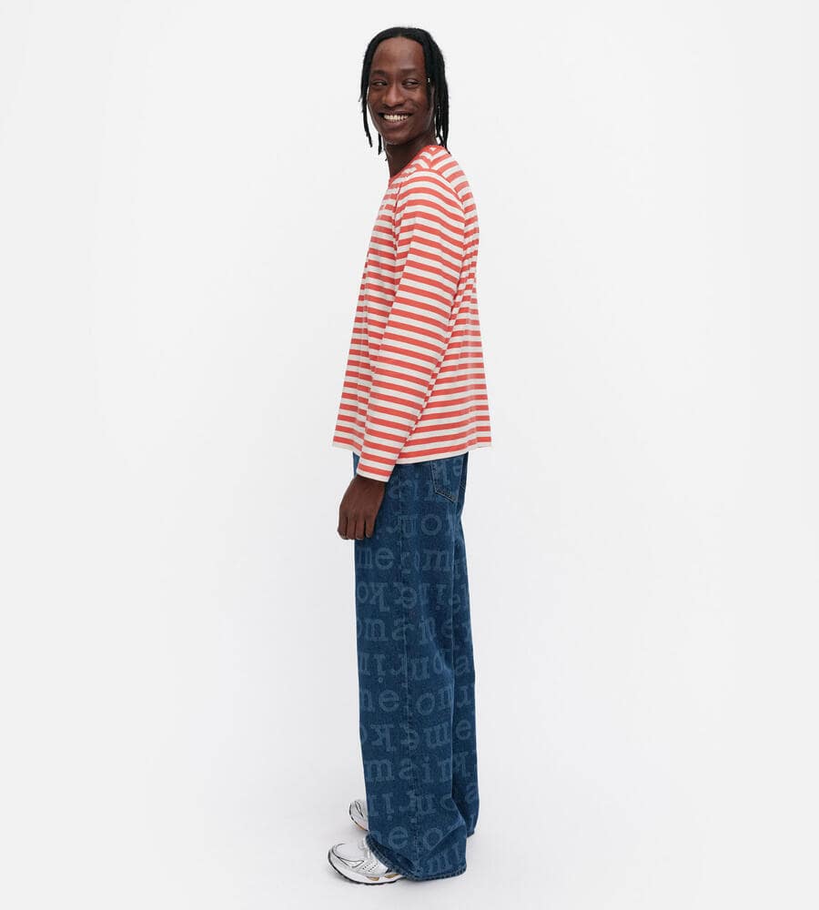 肌当たりのよいコットンの天竺素材を用いたカットソーです。ボーダー柄の胸元にUnikko柄のプリントを配しているのが、ブランドならではの遊び心あるアクセント。ゆったりとしたサイジングで、性別を問わずにお楽しみいただけるアイテムです。ジャケットなどのインナーとしても活躍します。
