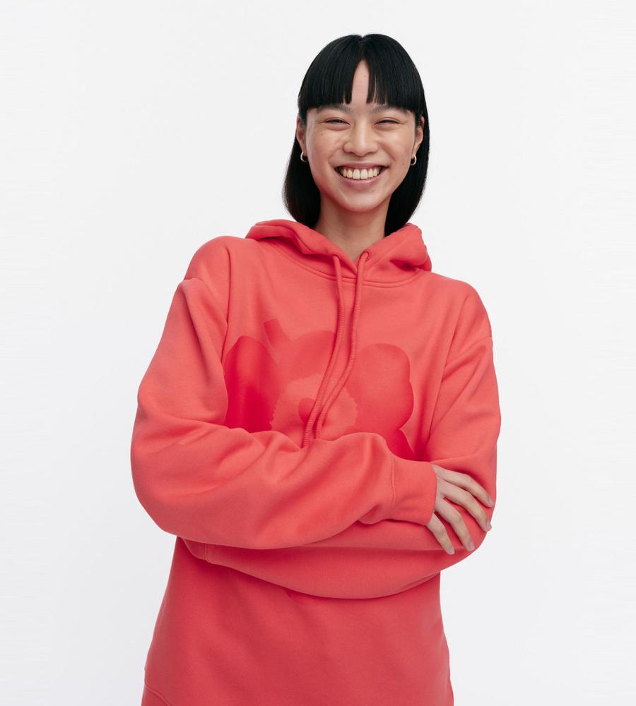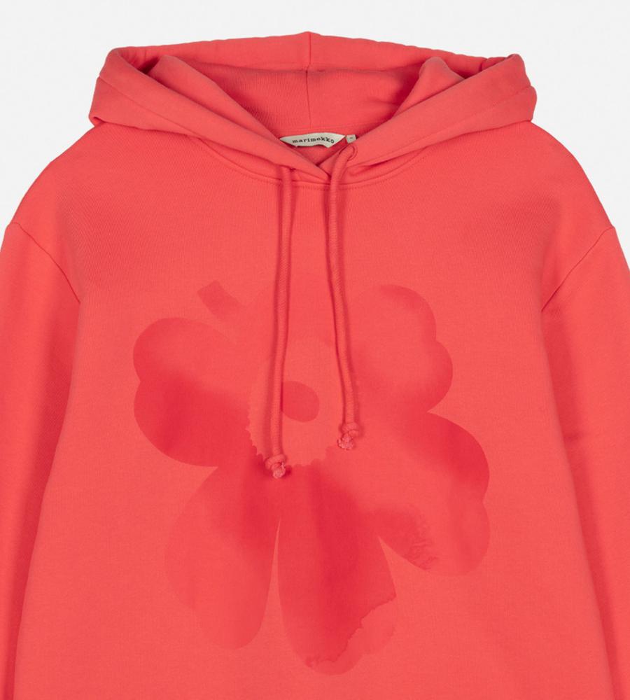 Marimekkoを代表するUnikko柄モチーフをフロントにあしらった長袖フーディ。ベースカラーに溶け込むようなグラデーションの水彩調モチーフが魅力。オーバーサイズでユニセックス仕様のリラックス感あるシルエット。お手持ちのボトムに合わせてスタイリッシュな着こなしが叶う一枚です。