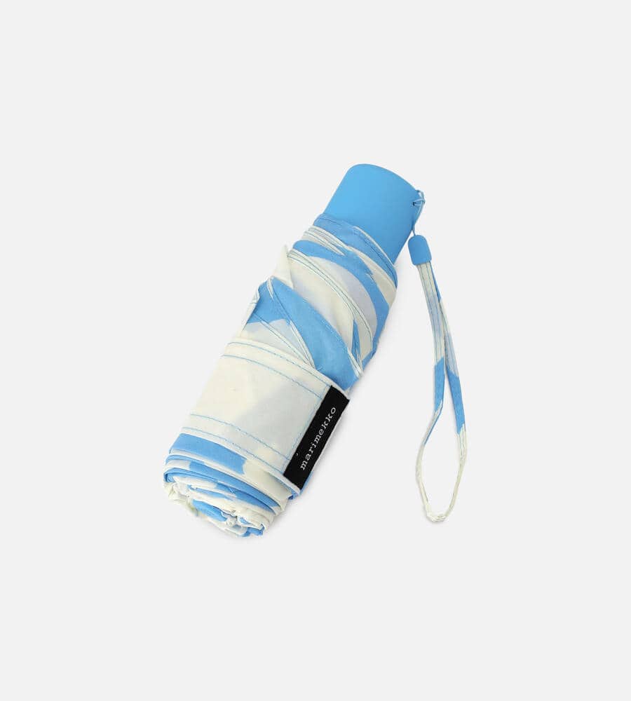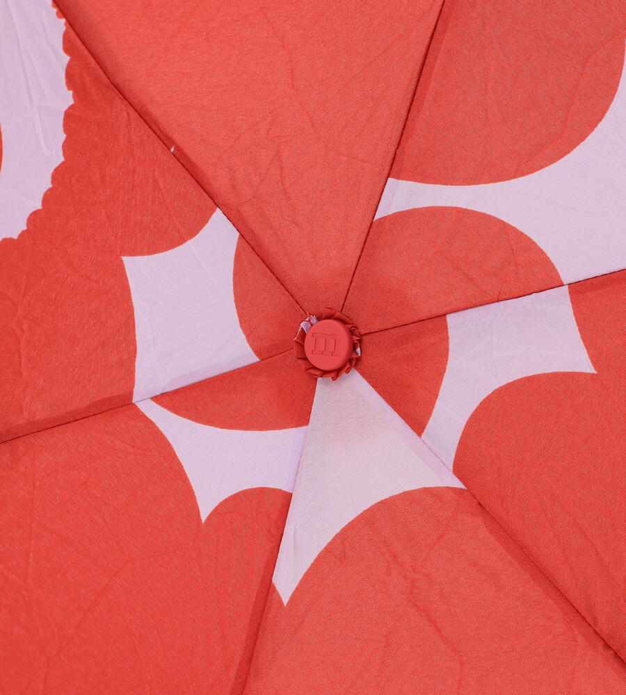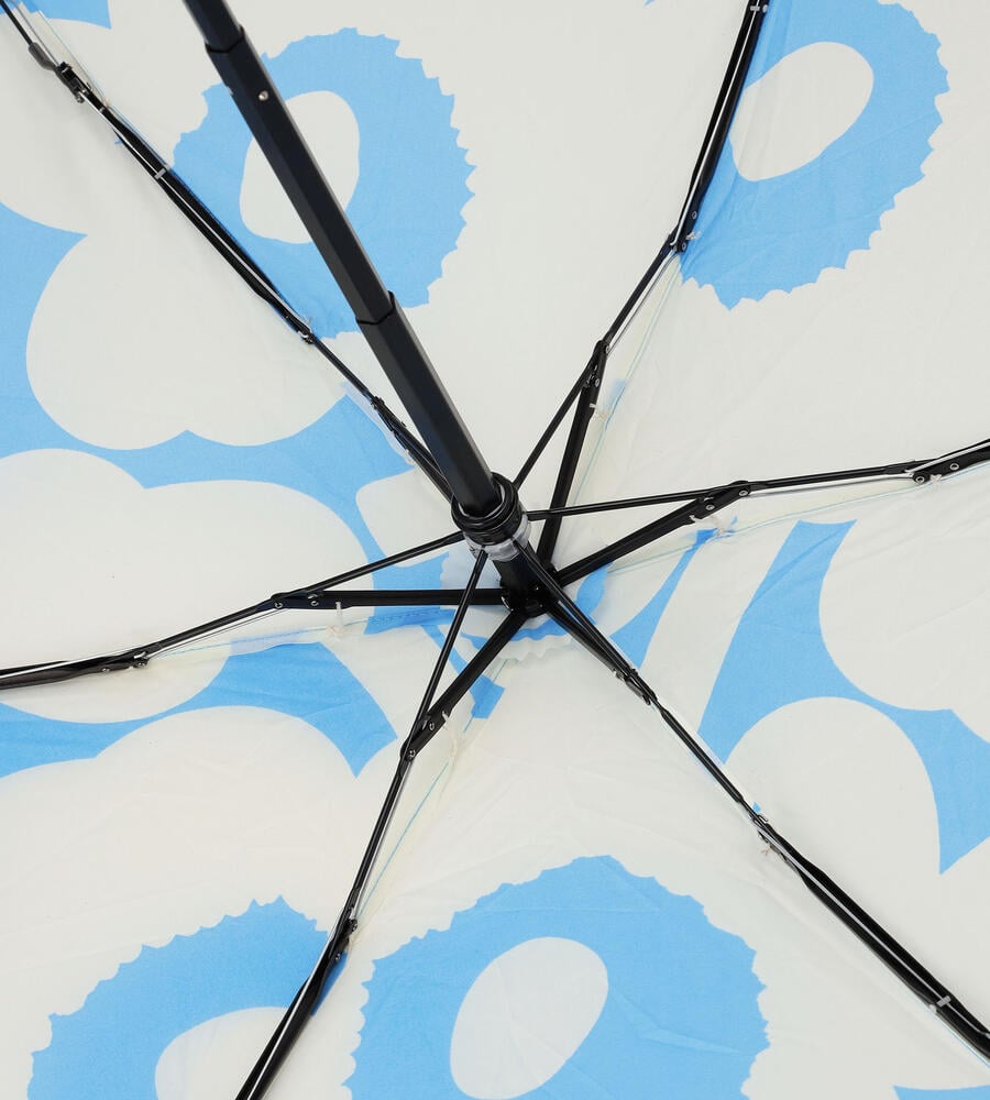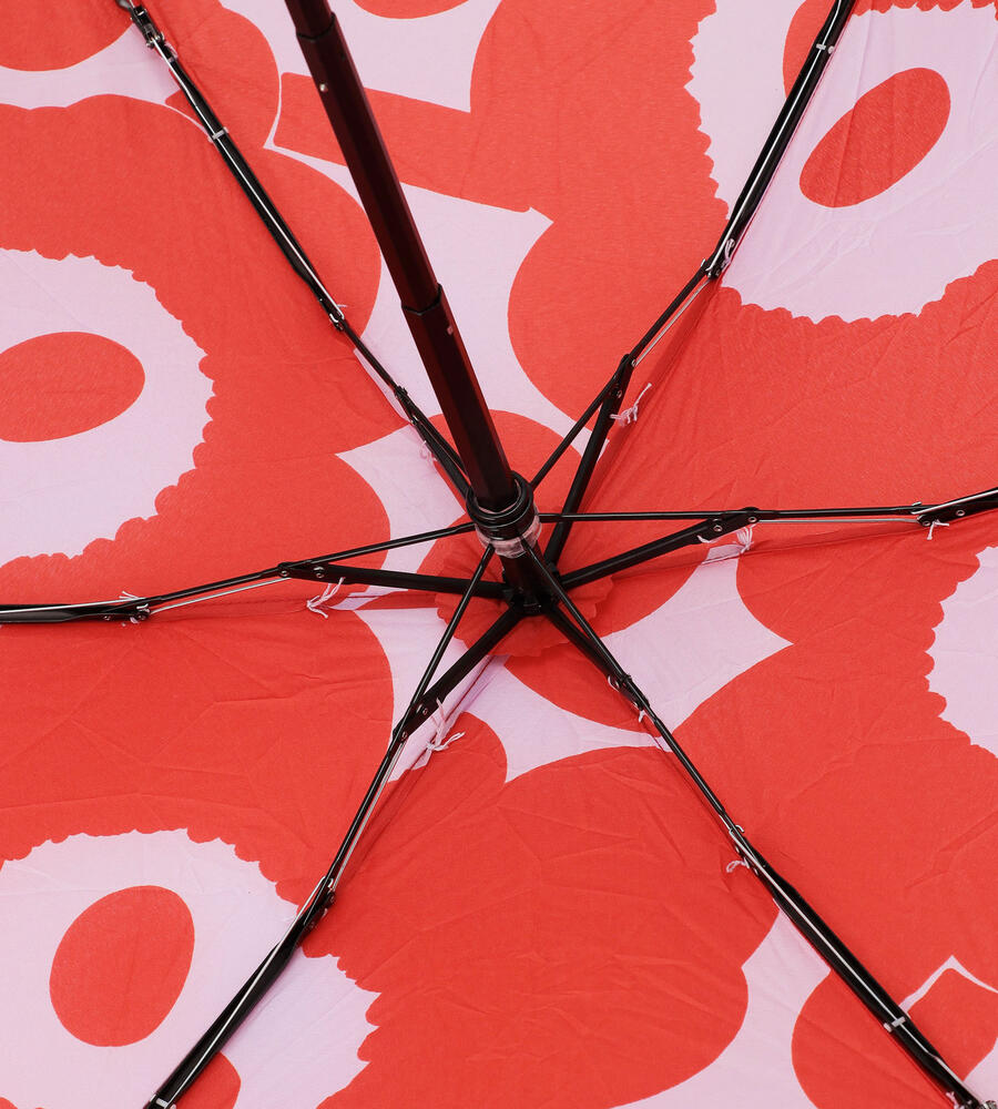 オフホワイト×ブルー、レッド×ライラックの華やかなカラーコンビが雨の日でも晴れやかな気分にしてくれるUnikko柄の折りたたみ傘。持ち運びに適したすっきりコンパクトなフォルム。同柄の専用カバーと手に掛けやすいストラップつき。