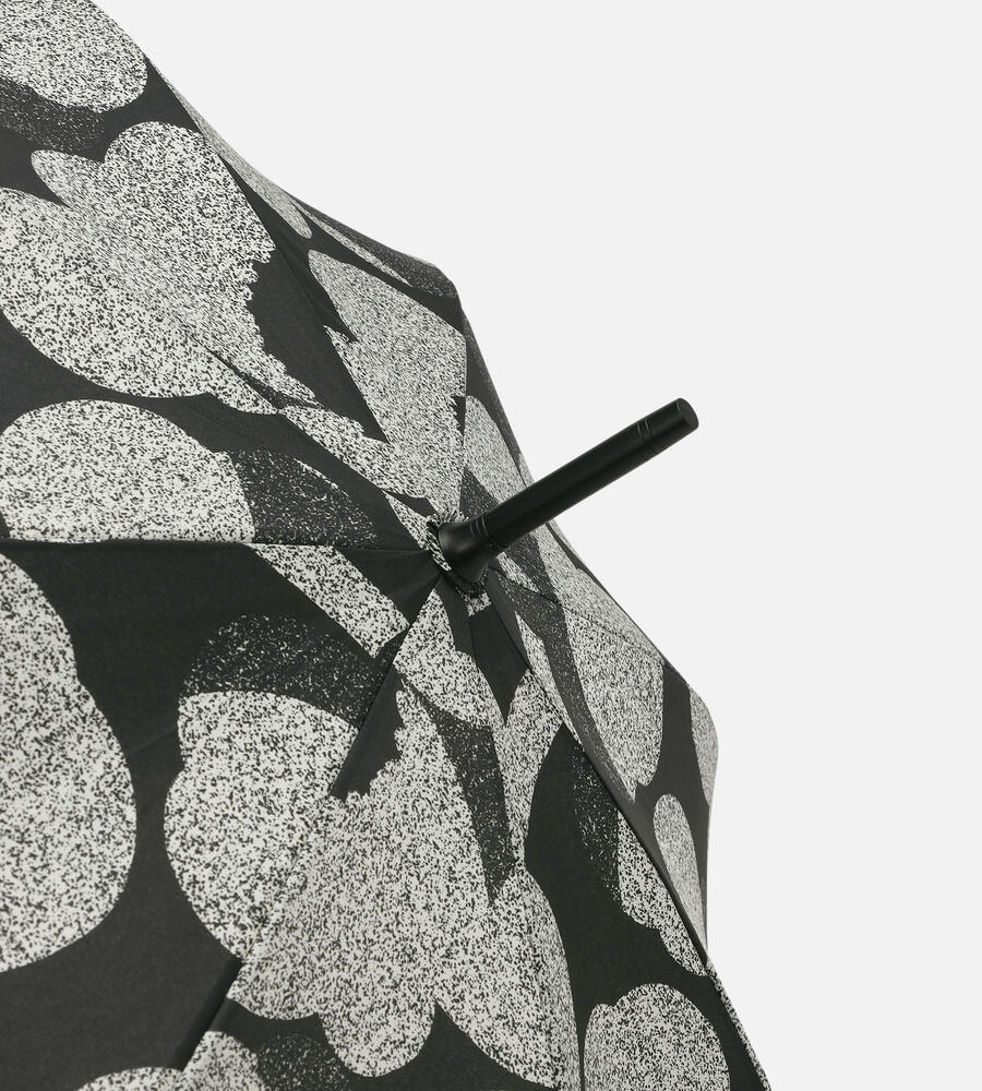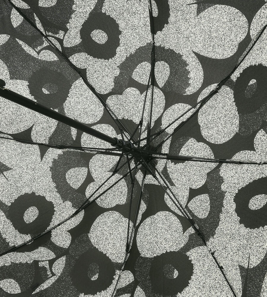 片手で簡単に開くことができるジャンプ式の長傘。大ぶりなUnikkoプリントをあしらった華やかなデザインが、どんよりとした空模様の日でも晴れやかな気分にしてくれそう。ベルト部分のMarimekkoロゴもさりげなく目をひくアクセント。持ちやすいハンドルとスリムなシルエットもポイントです。