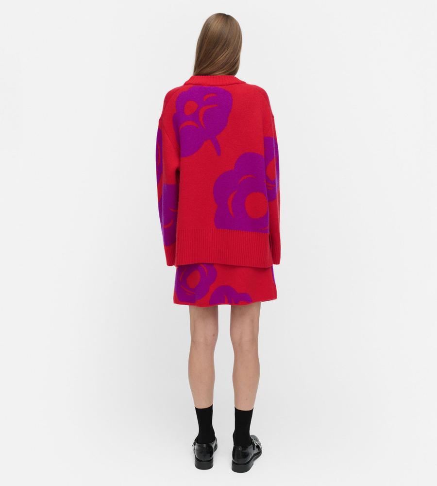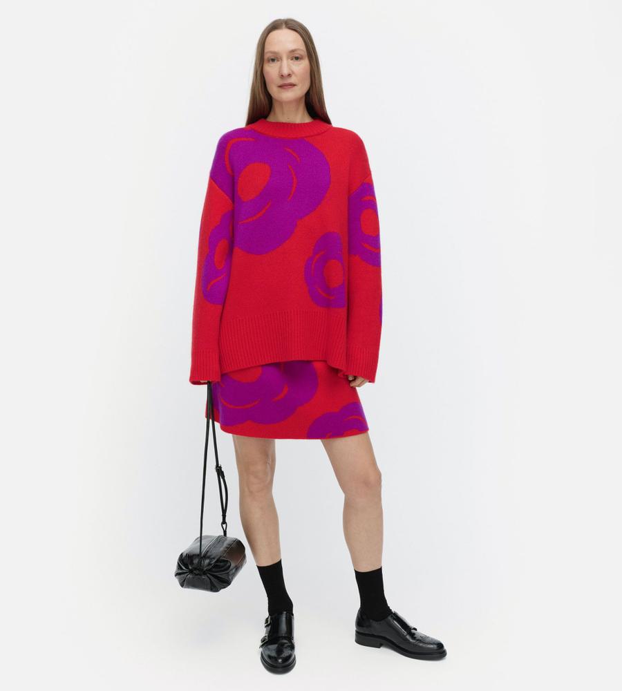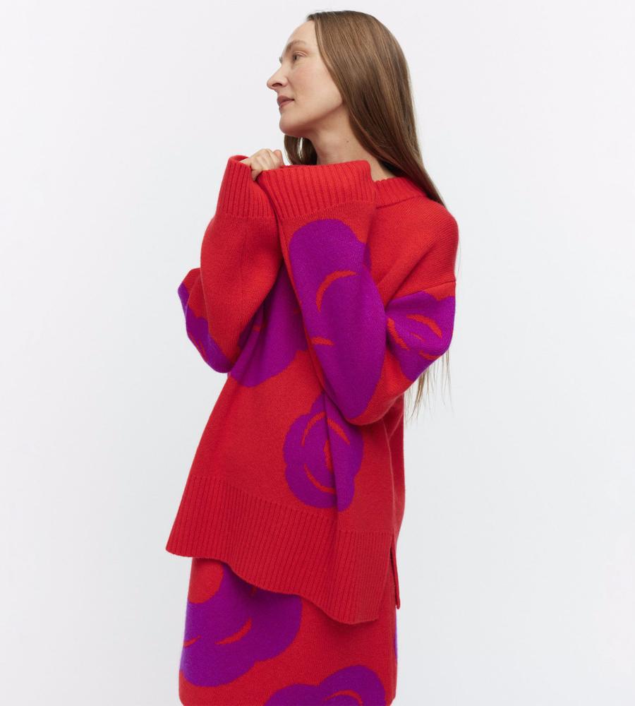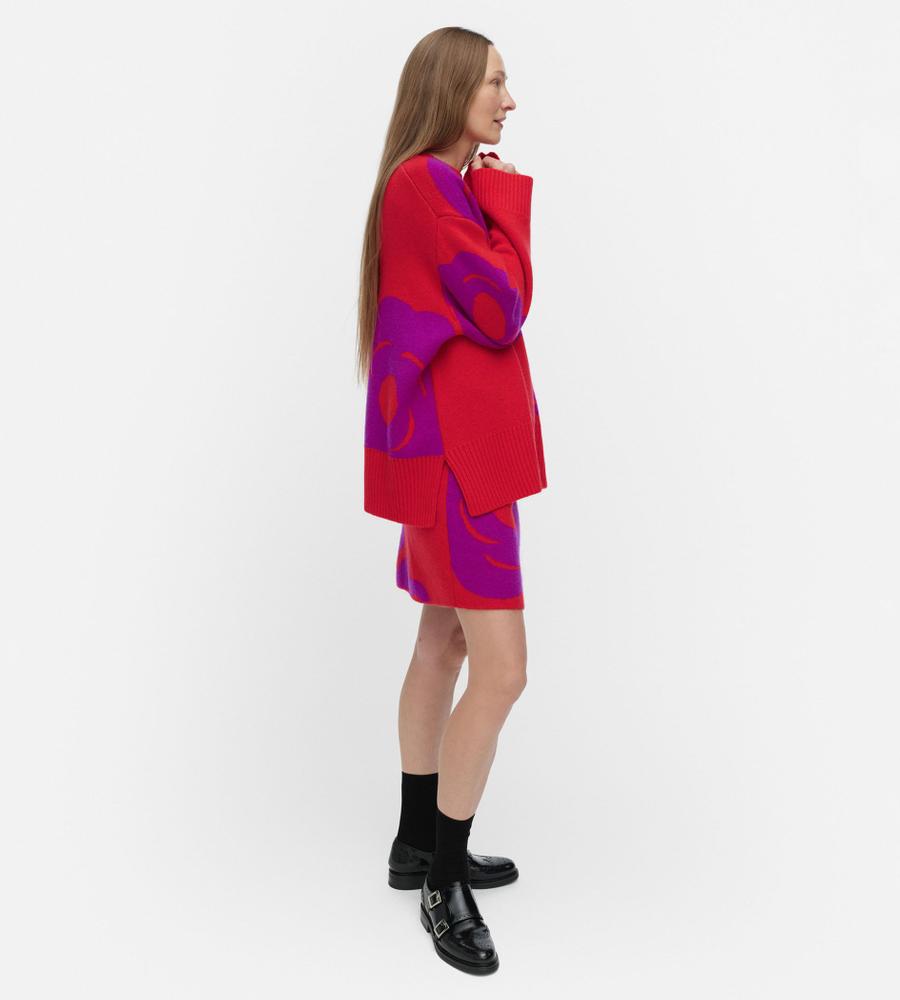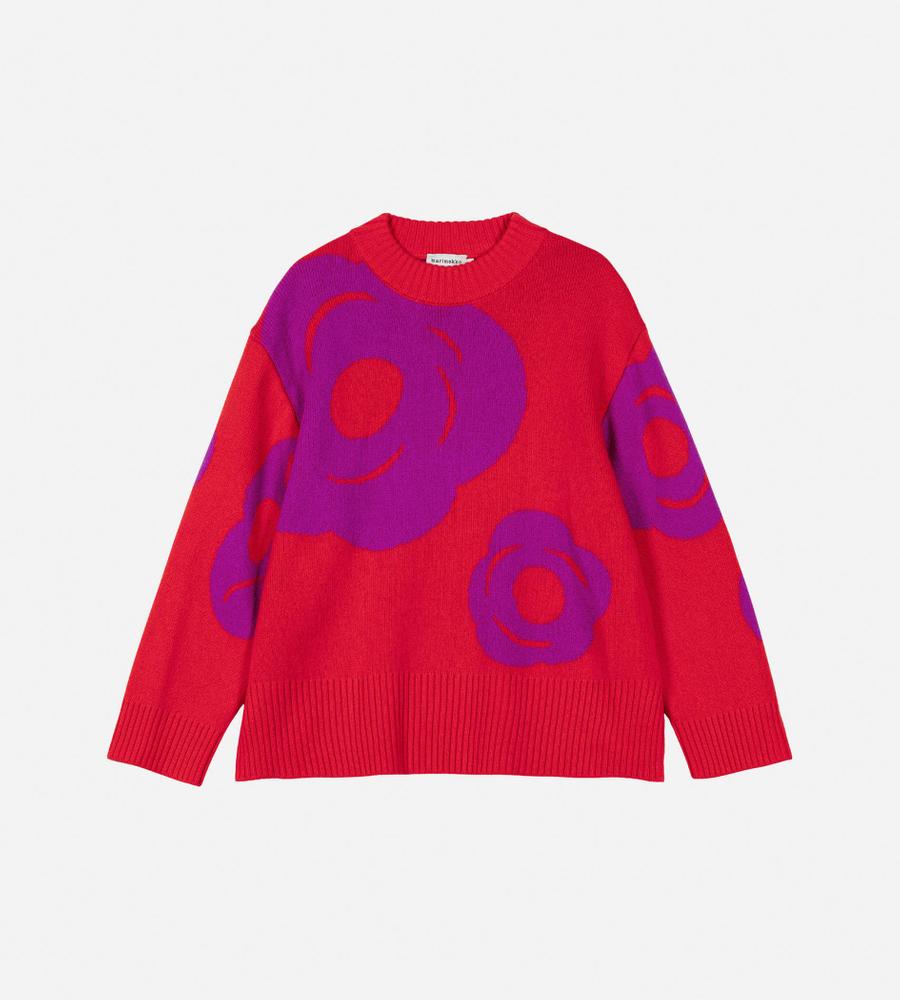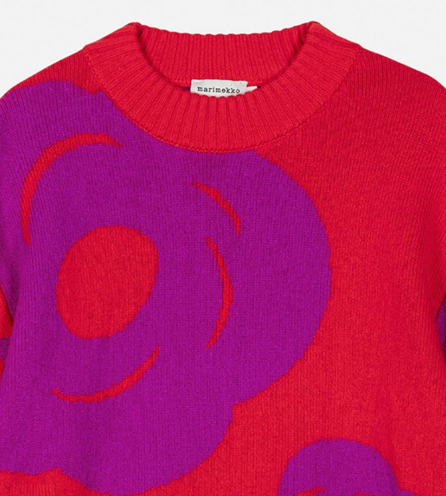 ゆったり着られる、リラックスフォルムの長袖ニットプルオーバー。「Tumma」柄のバイカラーデザインで、一枚で存在感を発揮します。袖口と裾はリブで切り替えつつ、絞りを入れないストレートラインにしました。同シリーズのボトムスと、セットで着こなすのがおすすめです。