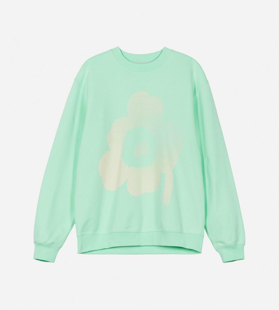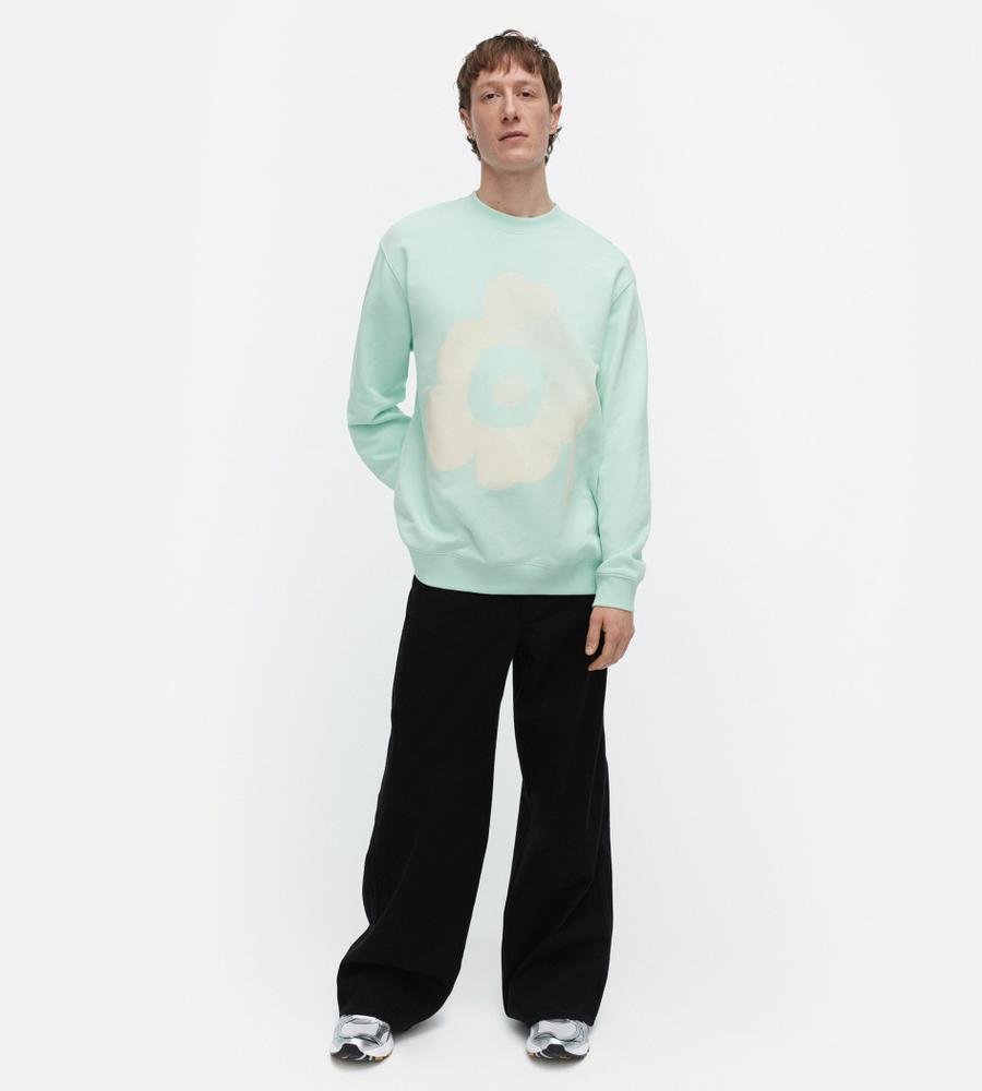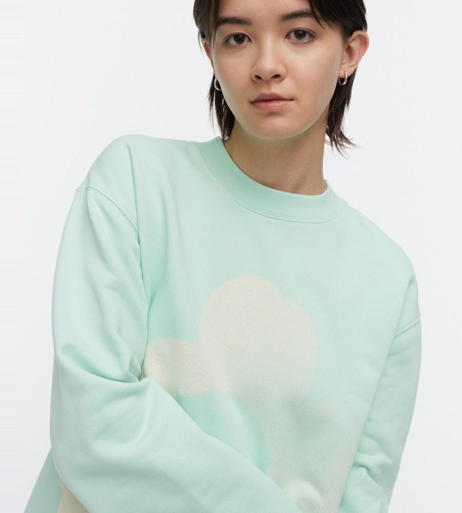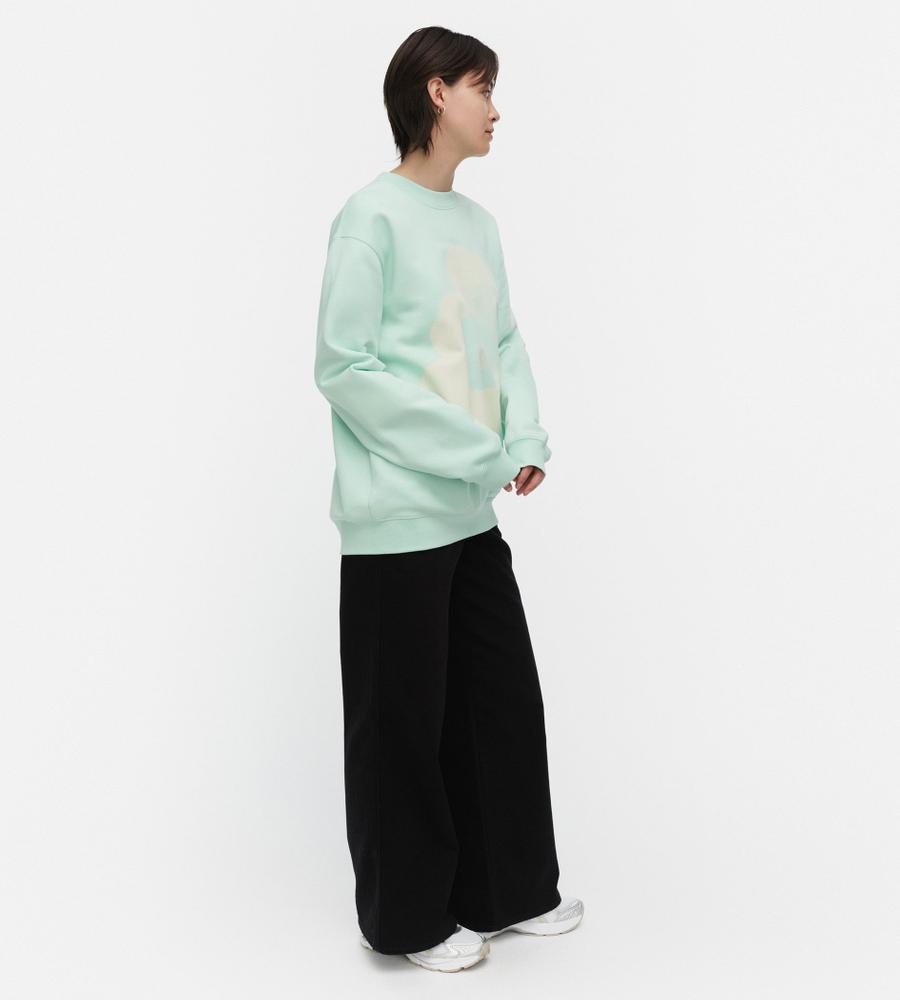 大輪のUnikko柄でフロントを飾ったスウェット。少しぼかしを加えたプリントが、単調にまとまることなく個性を際立たせます。リラクシングなオーバーサイズシルエットは体型を選ばず、ユニセックスで着用可能。カジュアルスタイルはもちろん、ドレスアイテムと組み合わせたテイストミックスにもぴったりです。
