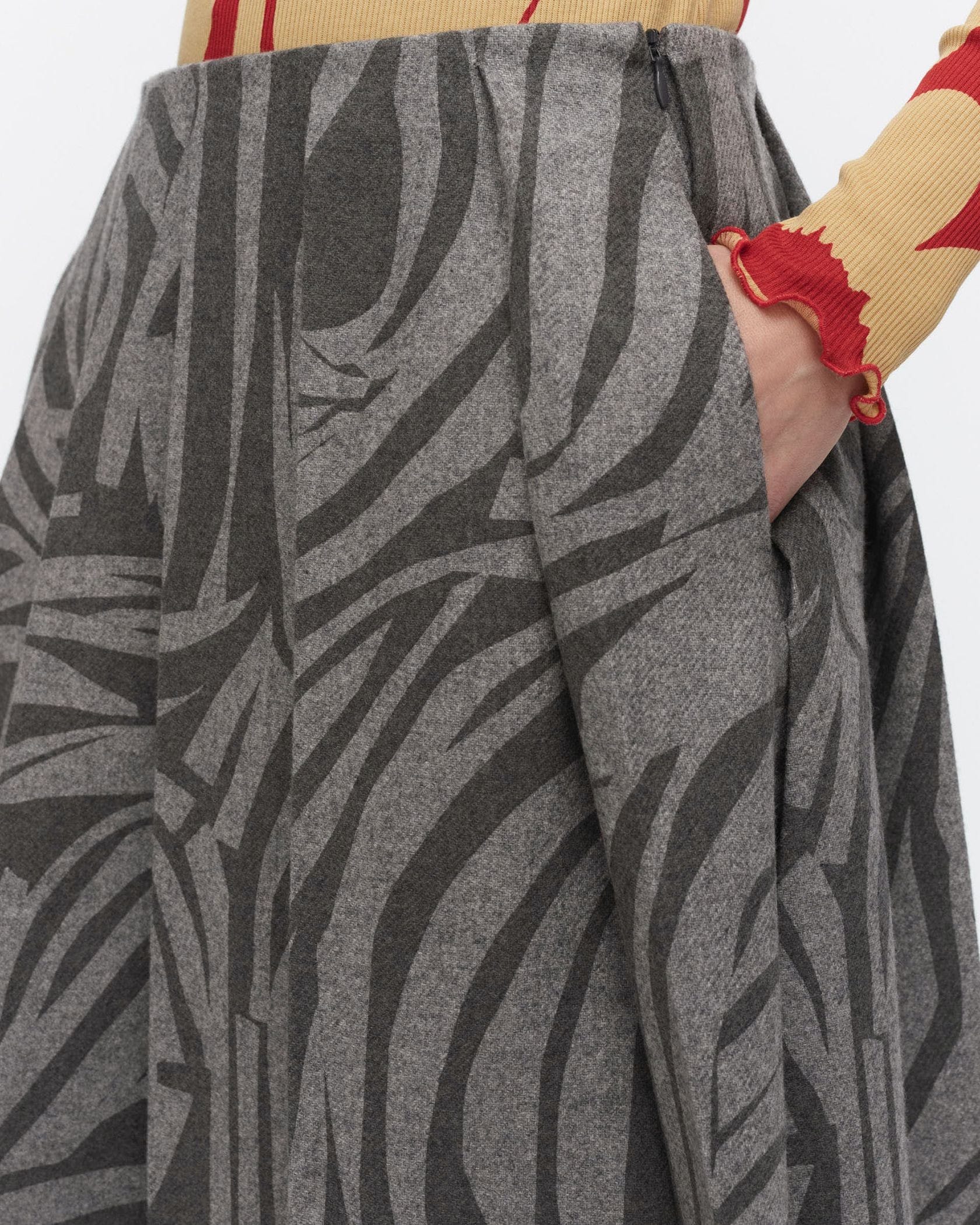 クールな柄が着こなしを引き立たせるスカート。ワイドプリーツも相まって、甘くなりすぎないスタイリッシュな装いが叶います。ポケットがついているのもさりげないポイント。