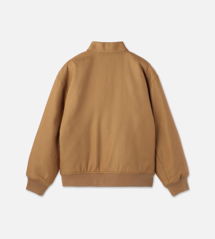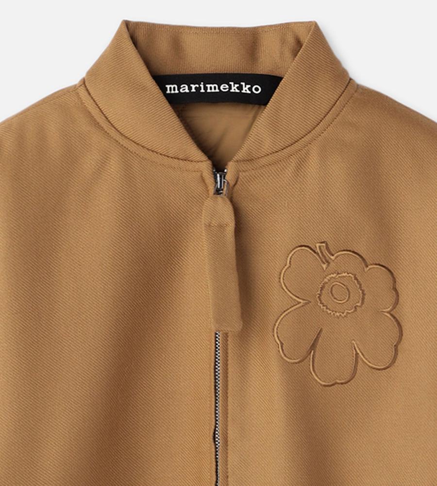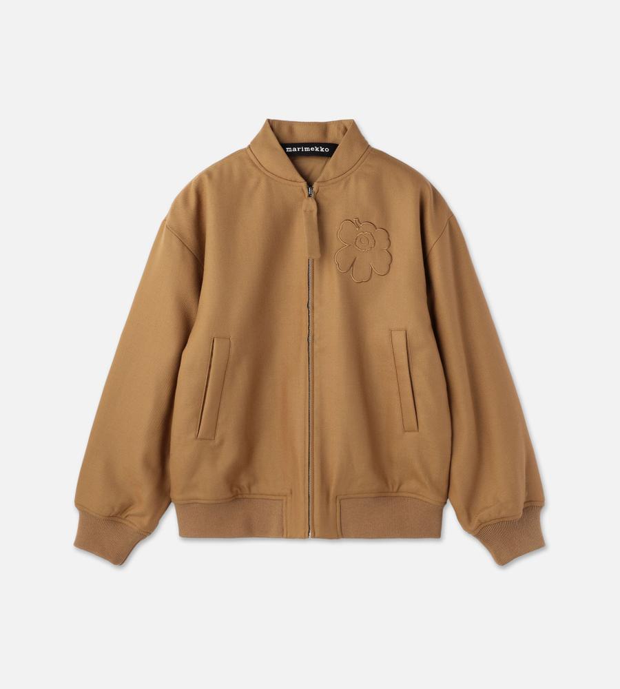 左胸にUnikko柄のエンブロイダリーをワンポイントにあしらった、Monumentti ウールジャケット。フロントはファスナー仕様、左右にポケットを配置。袖先と裾はリブで切り替えています。ドロップショルダーでどこかリラックスしたムードを演出したアイテムです。