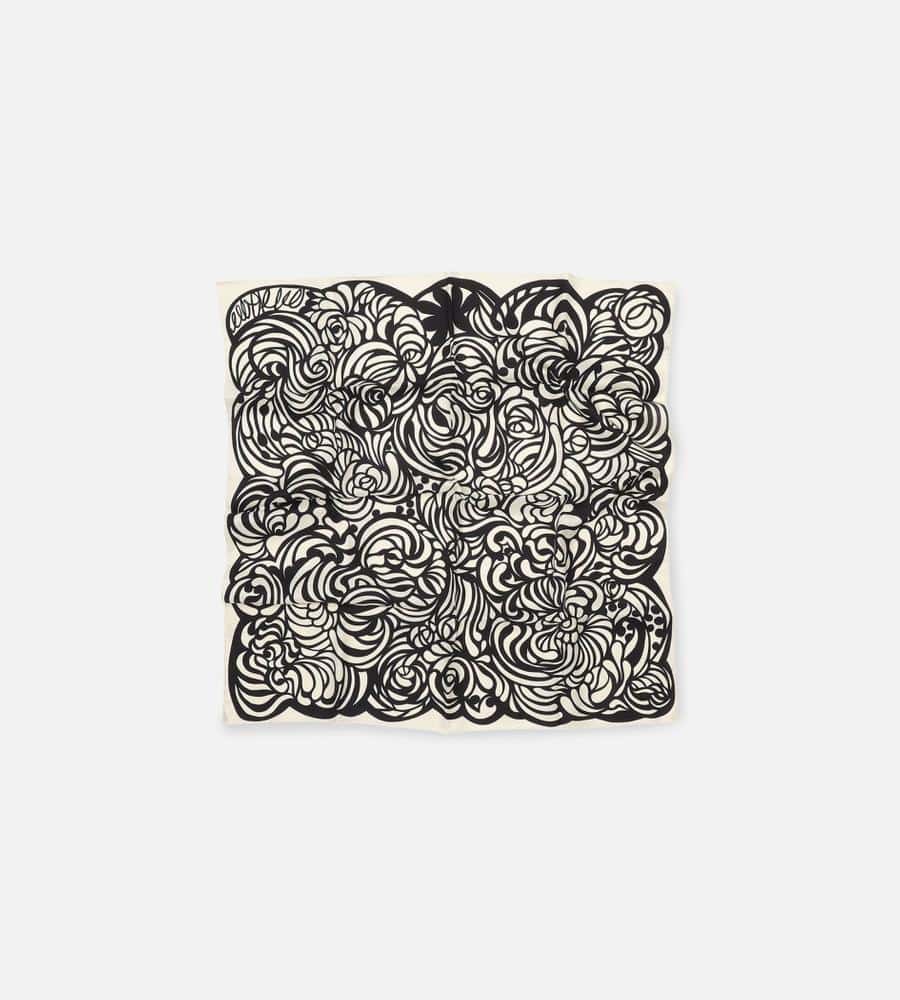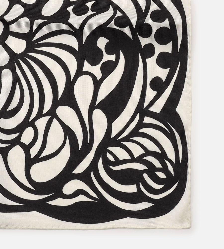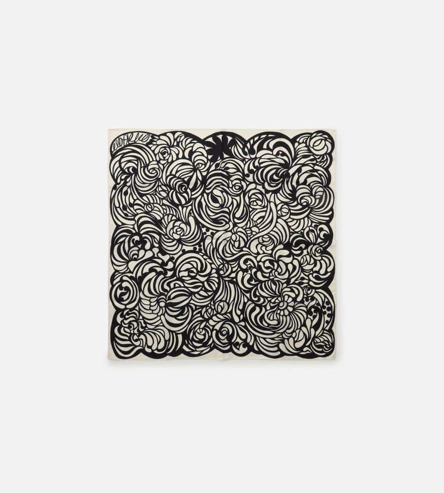 日曜日を意味する、「Sunnuntai」柄のプリントスカーフ。アレンジのしやすいスクエア型で、首もとの巻き方ひとつとっても、さまざまなアレンジをして楽しむことができます。また近年トレンドの、ヘッドスカーフに取り入れるのもおすすめです。大胆な柄は、コーディネートのアクセントとして活躍します。