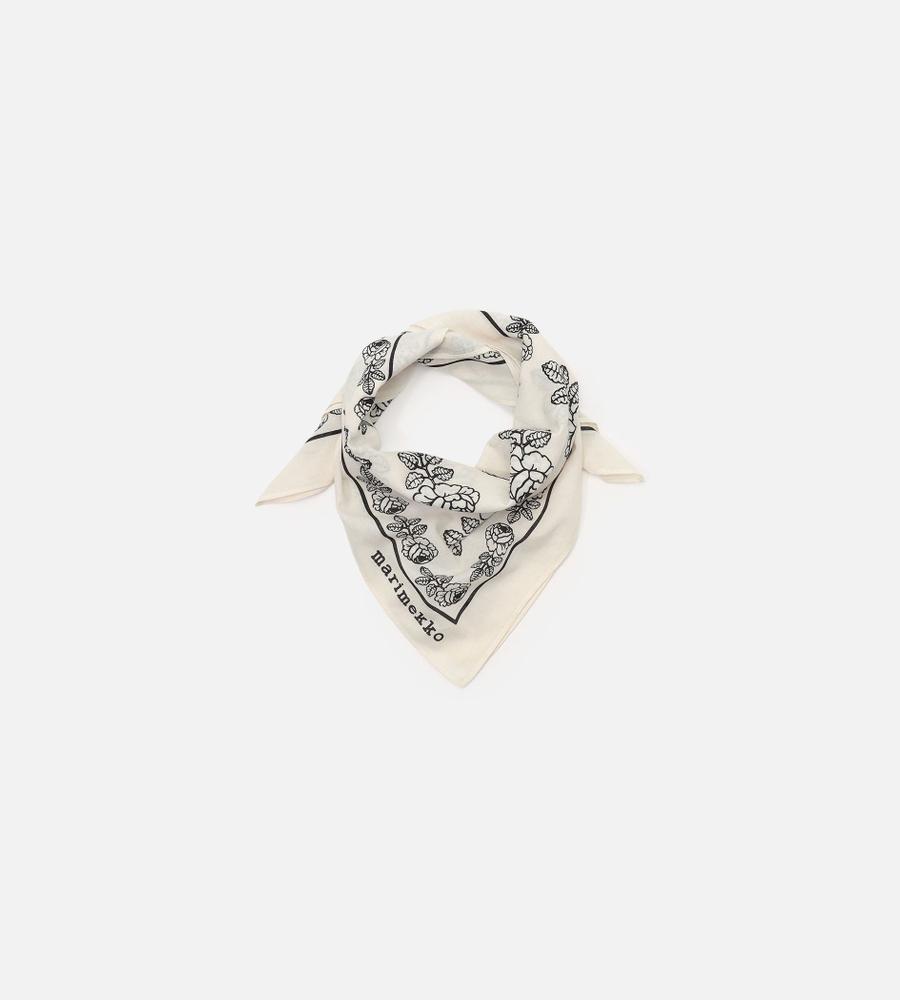 華やかでいてクールなバラ柄のスカーフ。首元に巻くのはもちろん、バッグのチャーム代わりにしても可愛い。さらりとしたコットン素材で、オールシーズン快適にご使用できます。