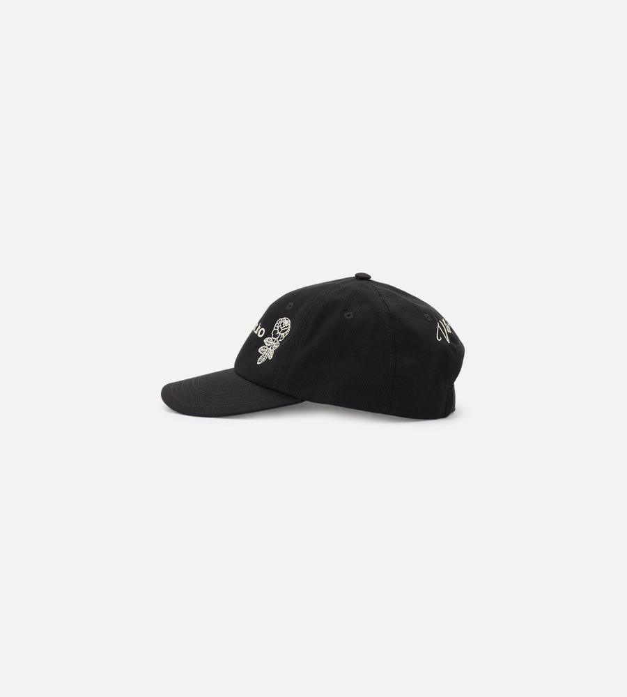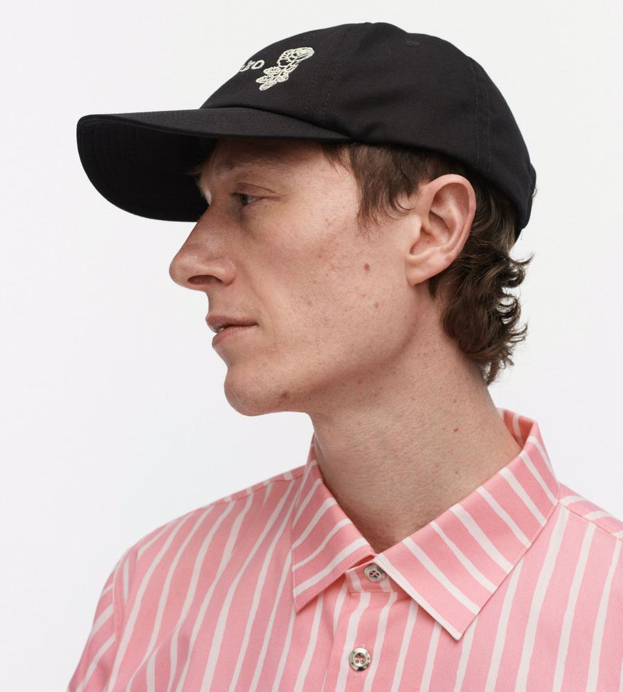 ロゴに添えられたバラ柄がキャッチーなキャップ。さりげなく被れて、装い全体をブラッシュアップしてくれるのがうれしい。オールシーズン快適な素材感もポイントです。