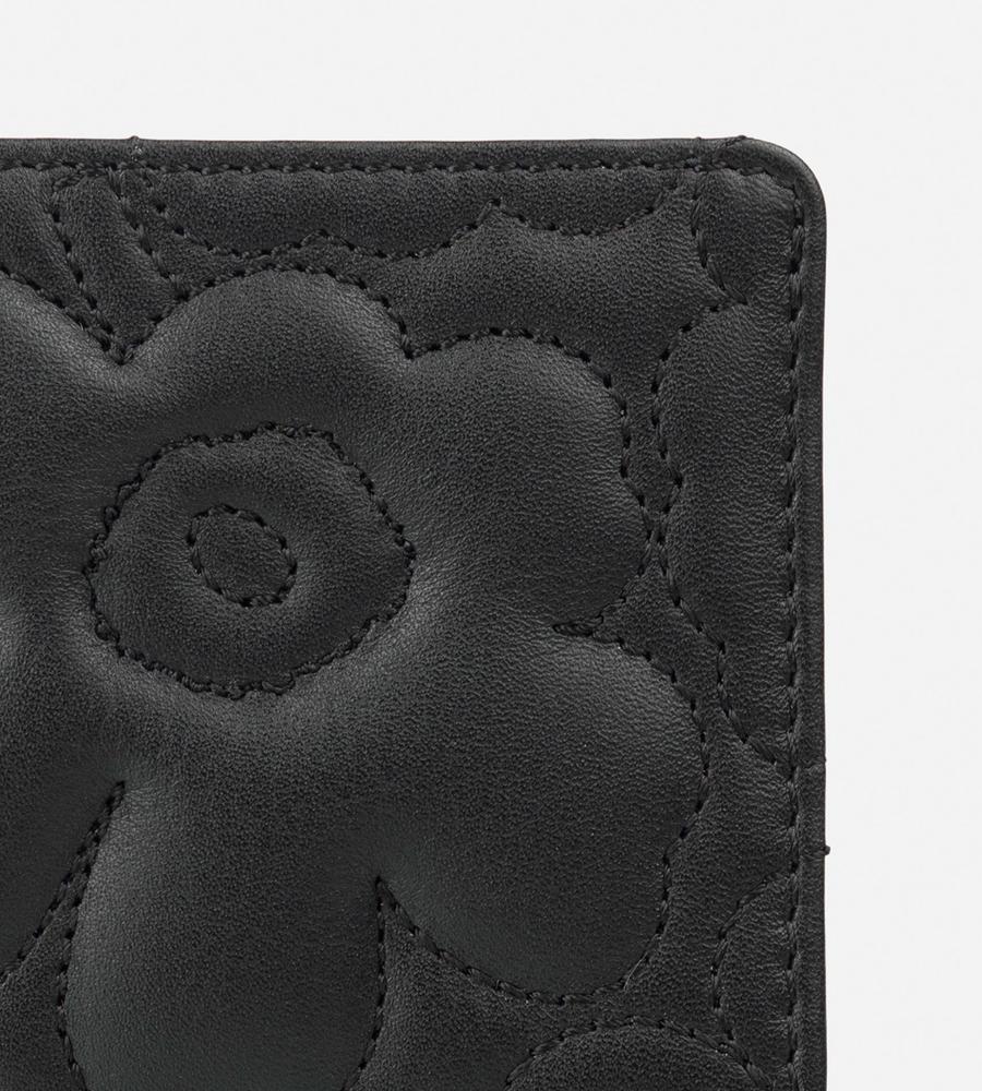 凹凸のあるUnikko柄のレザーがエレガントなカードケース。シックな落ち着きと華やかさを兼ね備えたデザインは、毎日の外出のお供にはもちろんギフトにもおすすめです。