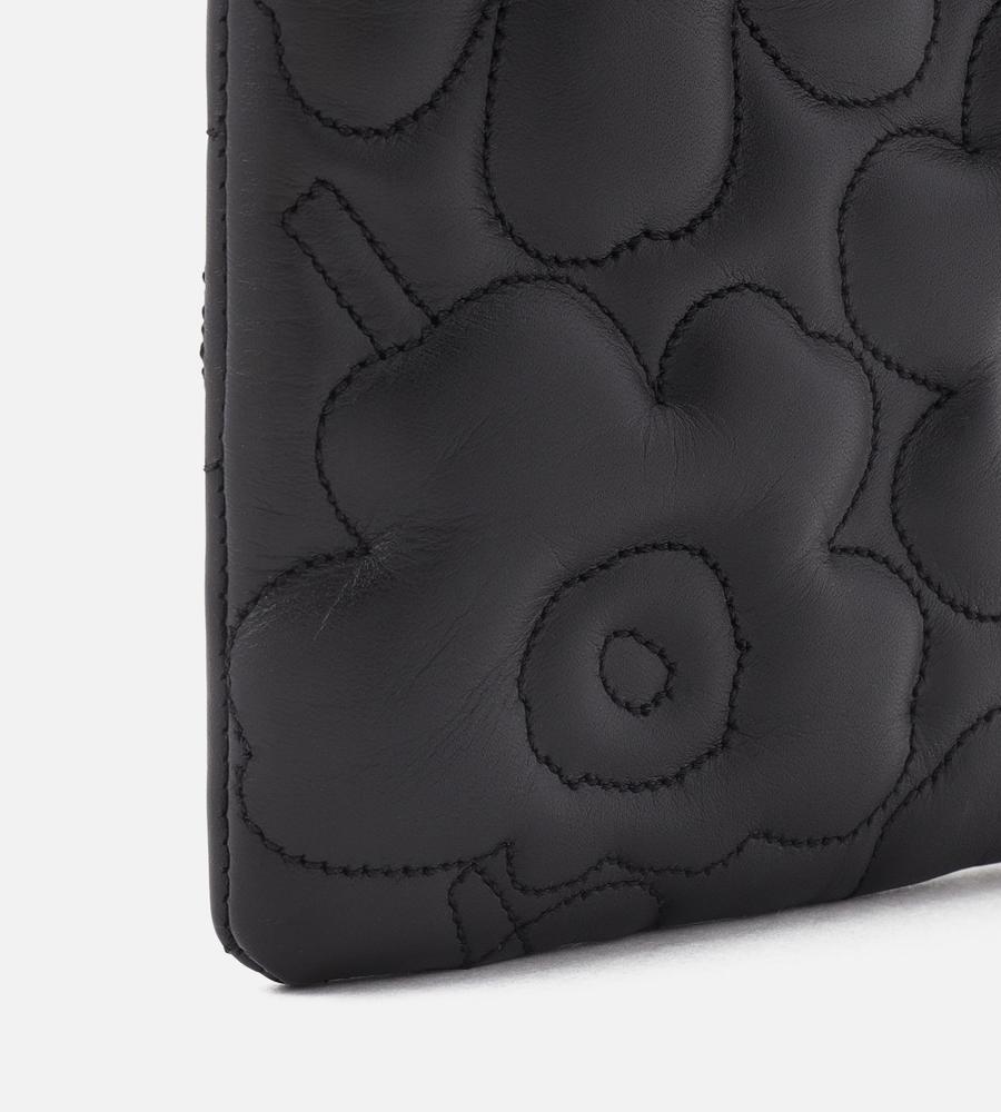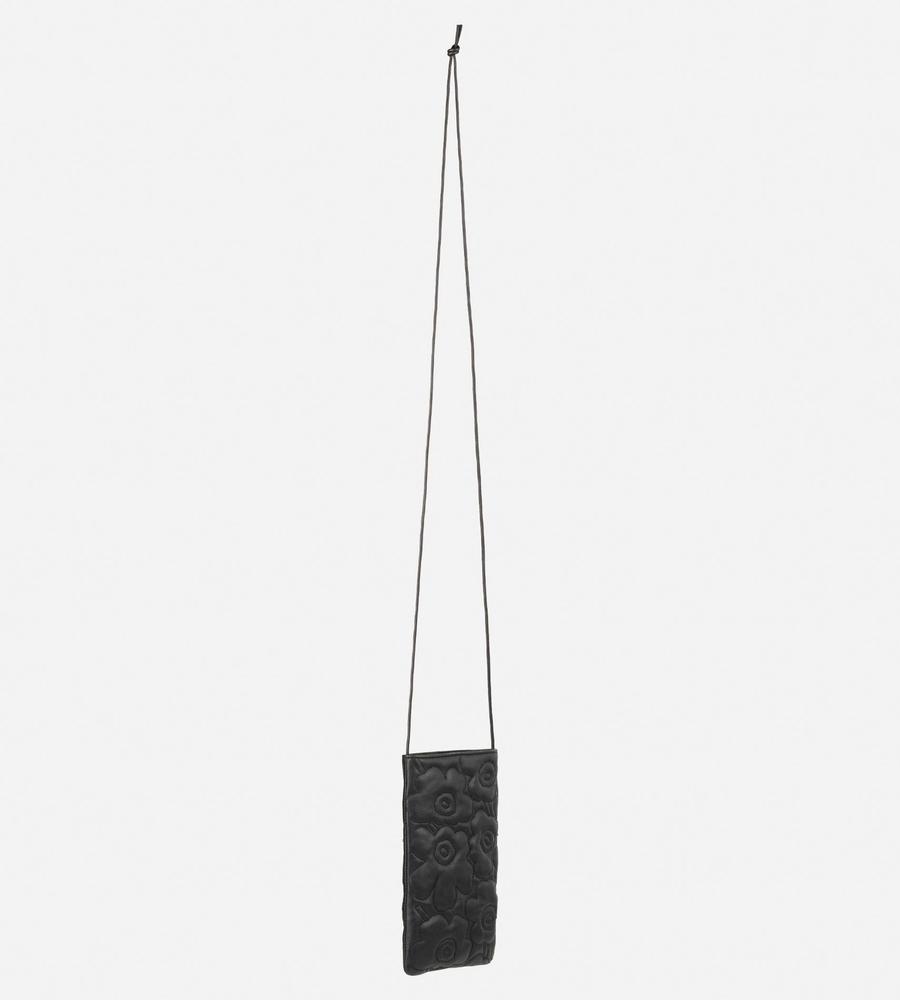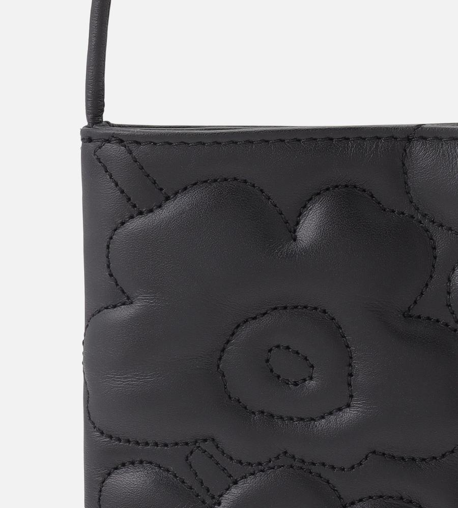 凹凸のあるUnikko柄のレザーがエレガントなショルダーバッグ。軽やかに斜め掛けすれば、瞬時にスタイリッシュな装いに。縦長のスクエア型は、スマートな表情を演出するのも魅力です。