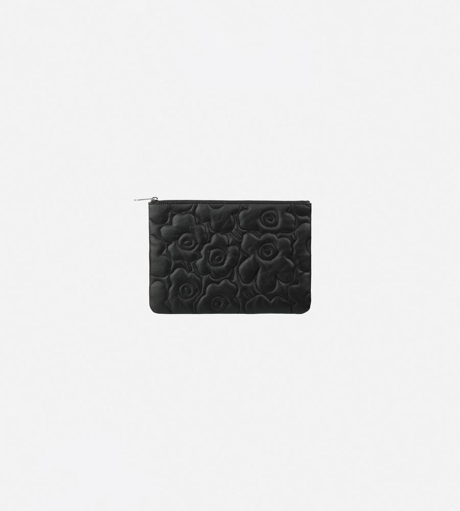 凹凸のあるUnikko柄のレザーがエレガントなクラッチバッグ。シャープなスクエア型で、どんな装いにも合わせやすい一品です。デイリーユースにはもちろん、ギフトにもおすすめです。