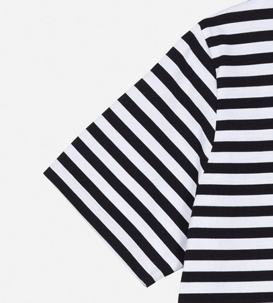 カジュアルスタイルをシックに彩るボーダー柄の半袖Tシャツ。胸元に配したUnikkoモチーフが、ブランドらしさをさりげなくアピールするアクセントです。1枚使いはもちろん、ベストやデニムジャケット、パーカなどを羽織るスタイリングにも活躍。肌当たりの良い天竺素材を使用しています。