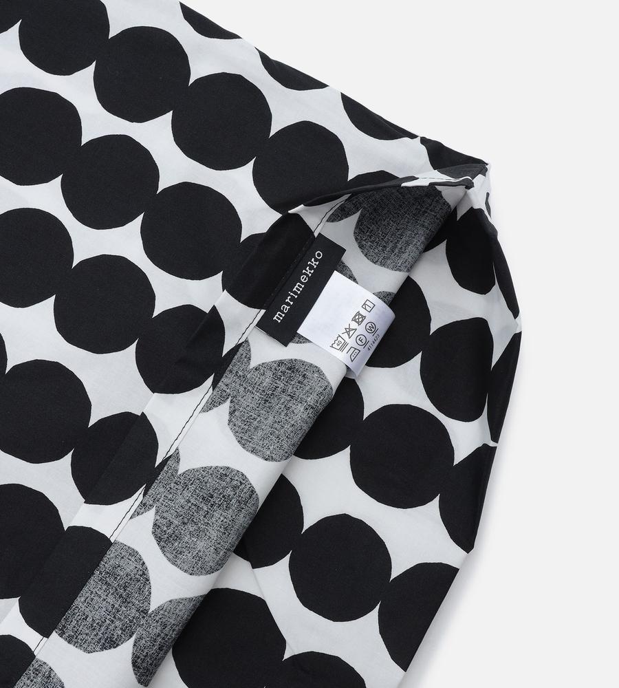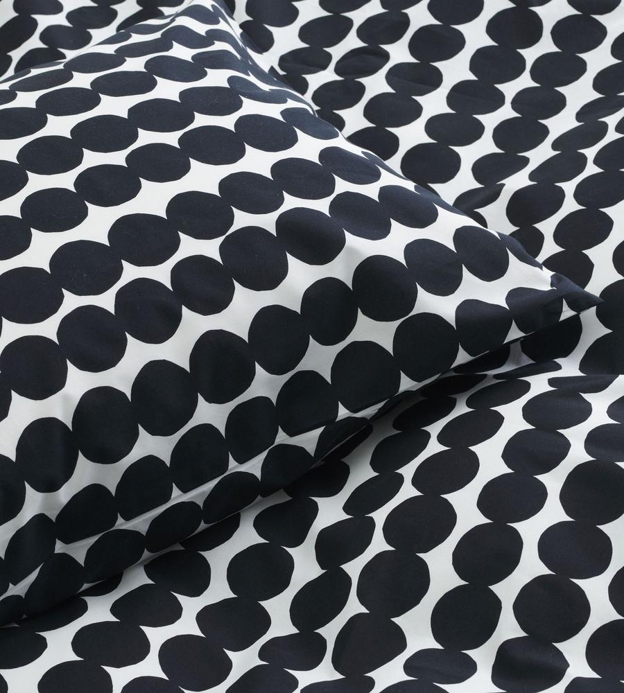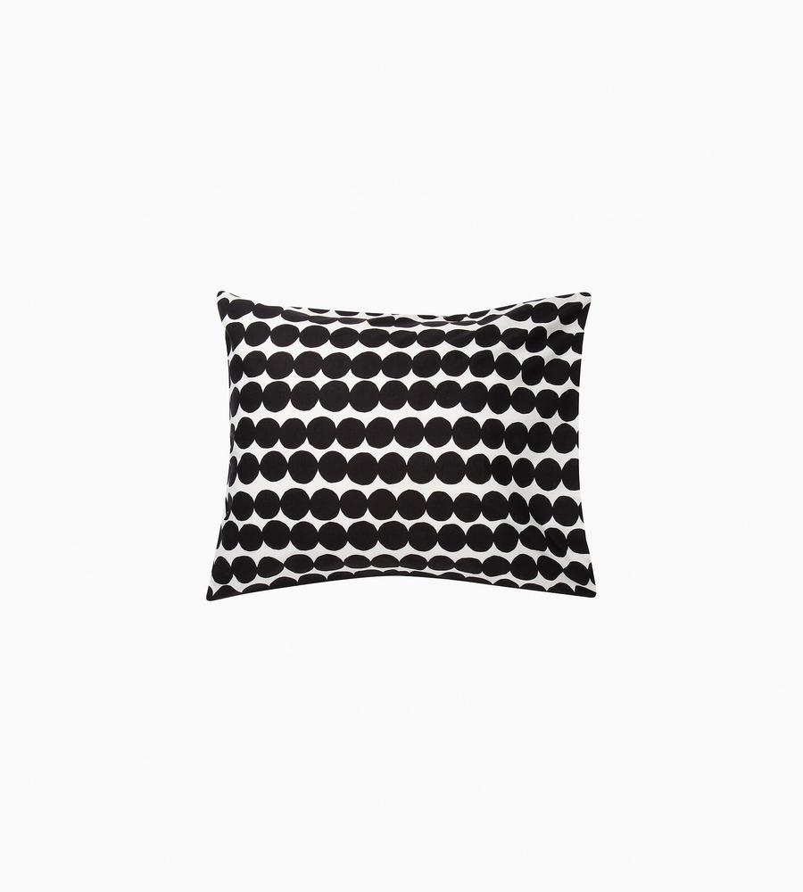 リズミカルに並んだドットのラインが印象的なデザインのRasymatto柄のピローケース(50x60cm)。形の異なる丸が並んだシンプルかつスタイリッシュなデザインが魅力。肌触りの良いコットン素材を使用。モノトーンで合わせやすくベッドルームのスタイリングのアクセントに最適なアイテムです。