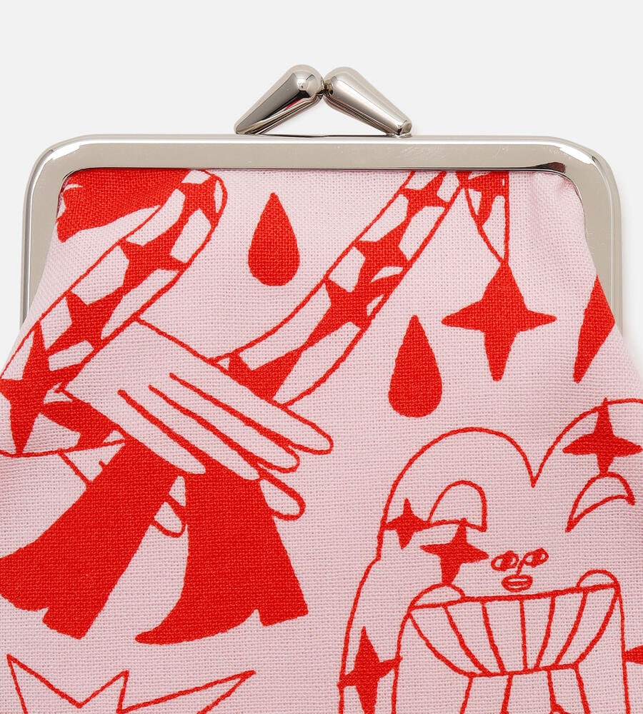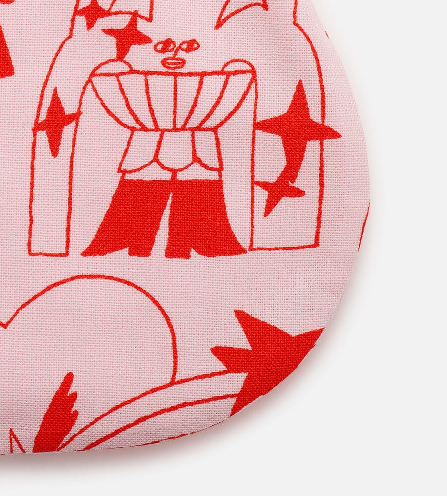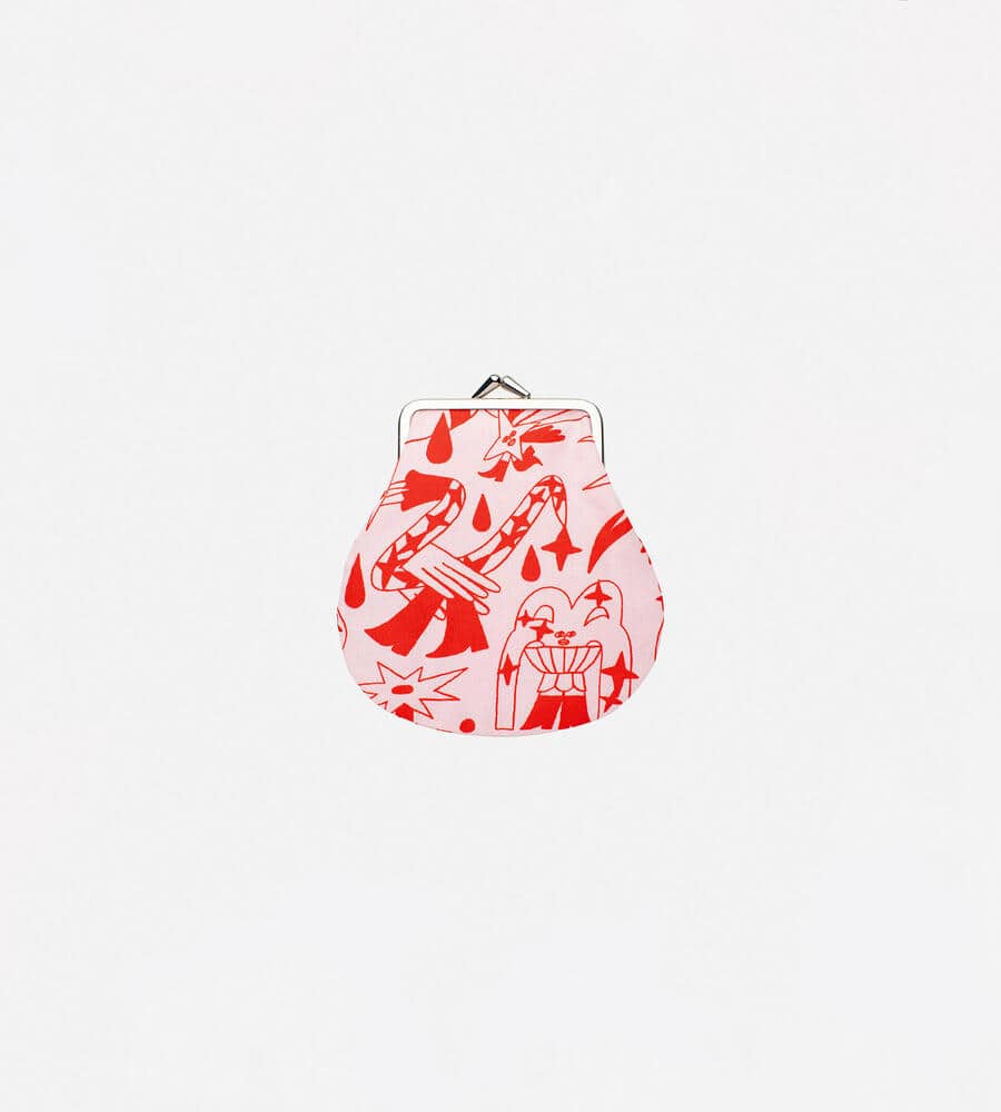 ライトピンク×レッドのカラーコンビが愛らしいAureate Glowパターンのがま口ポーチ。ひょうたんのようなフォルムが特徴的なデザイン。キラリと光る金属製のフレームが洗練された印象に。メイクアイテムや小物類をまとめるのに活躍します。