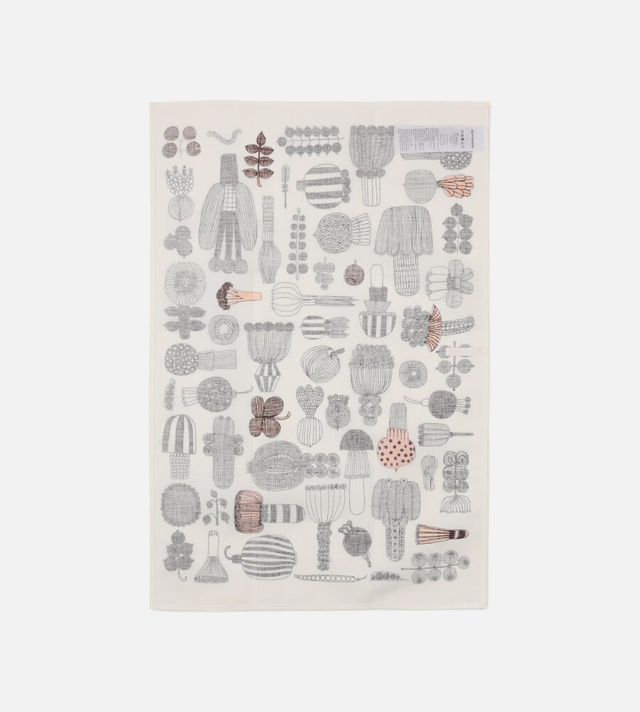 ナチュラル感あふれる手描き風のタッチでボタニカルモチーフをデザインしたティータオル。部分的な彩色により、独特の雰囲気が加わっています。幅広い用途に便利な大きめのサイズ感です。フックにセットできるようループを備えているのもポイント。肌触りはさらっとして心地よく、乾きやすさも魅力です。