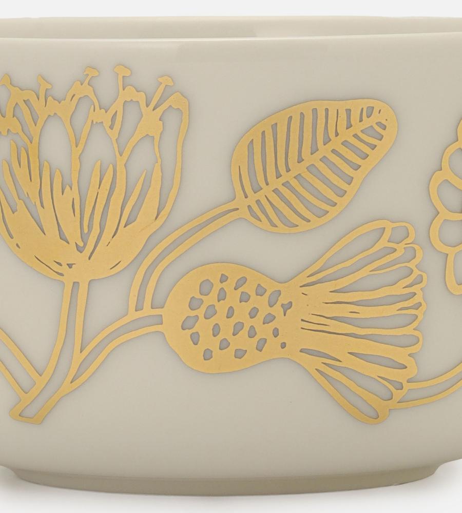 様々な植物や花々がぐるりと描かれたTiara柄が印象的なデザインのボウル(250ml)。美しいゴールドメタリックの顔料を使用した、エレガントで華やかなカラーも魅力。高さのある深めのフォルムで様々な用途にマッチ。テーブルコーディネートのスタイリッシュなアクセントになるアイテムです。