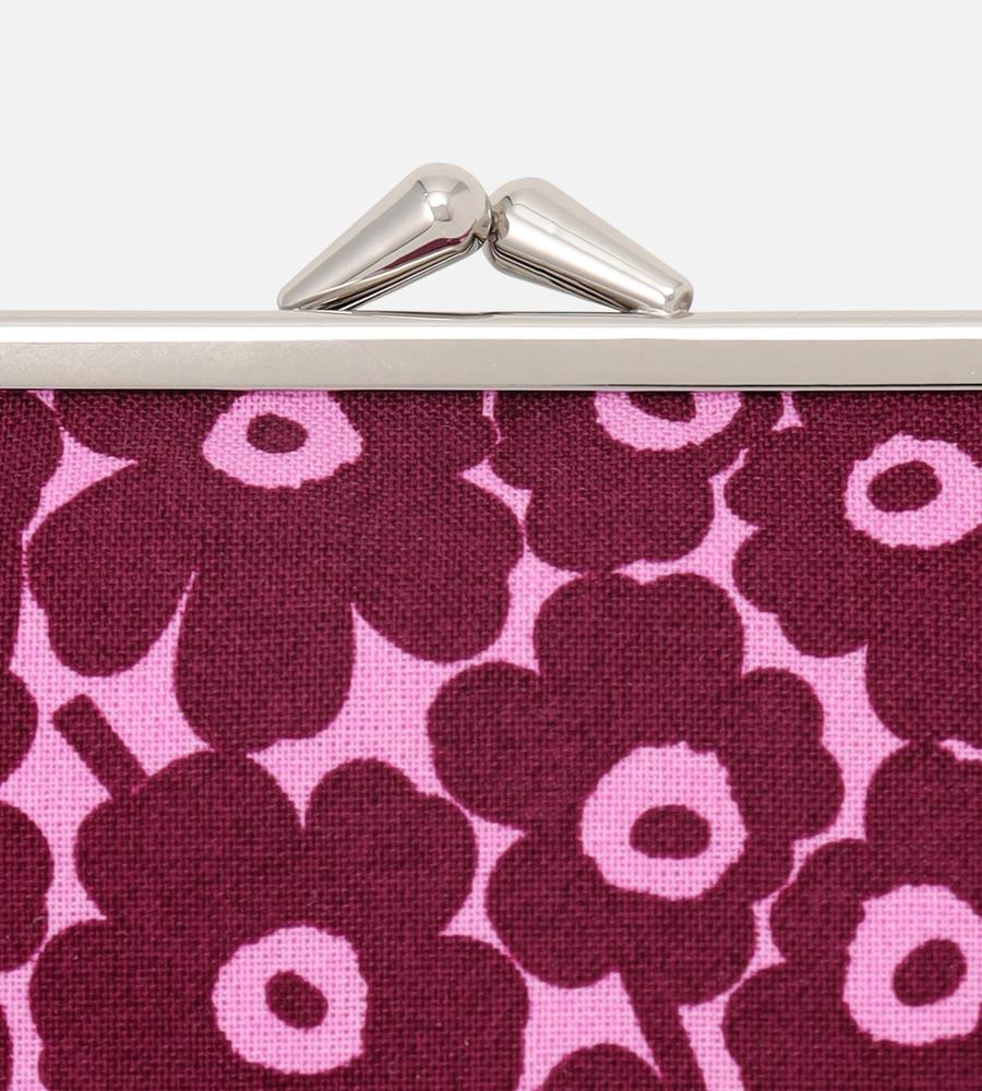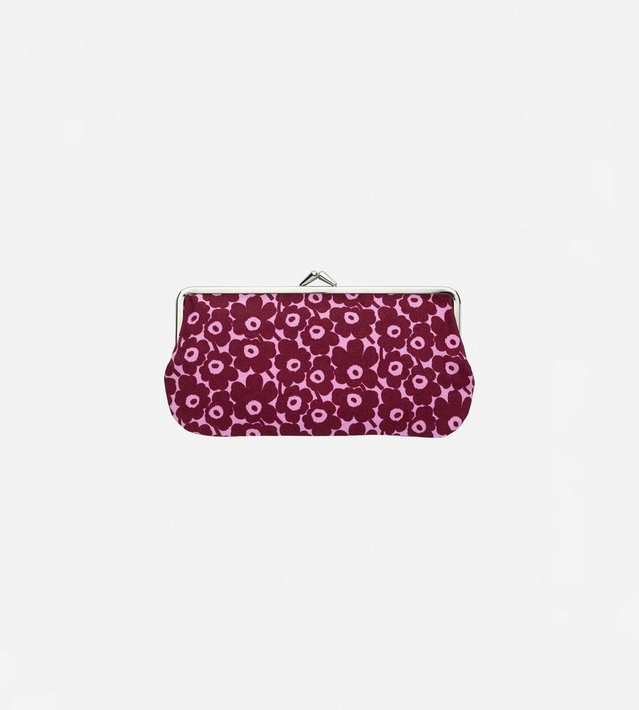 Unikko柄の総柄でとびきり愛らしく仕上げたポーチ。横長のフォルムは、メイク道具を収納したいときにも便利。開閉部はがま口になっており、ワンタッチで開けたり閉めたりできます。