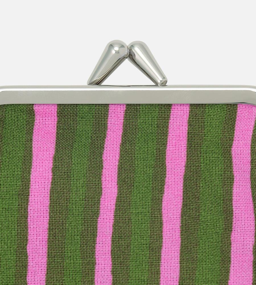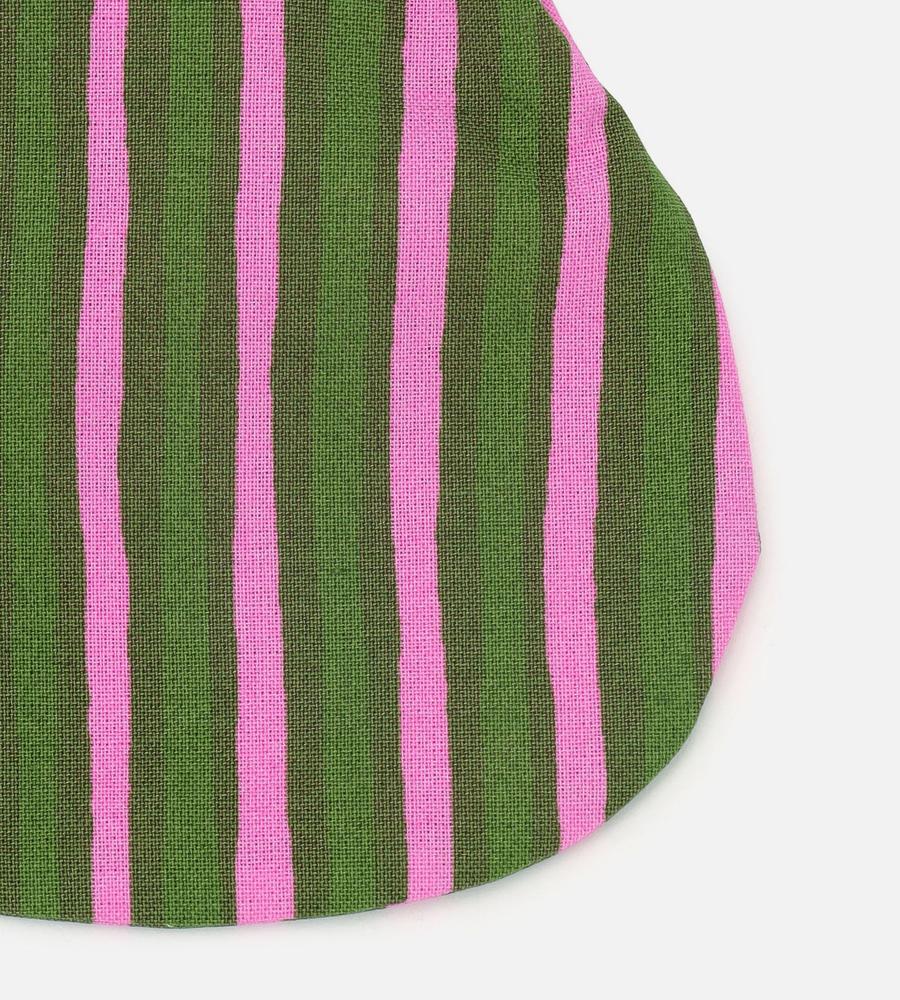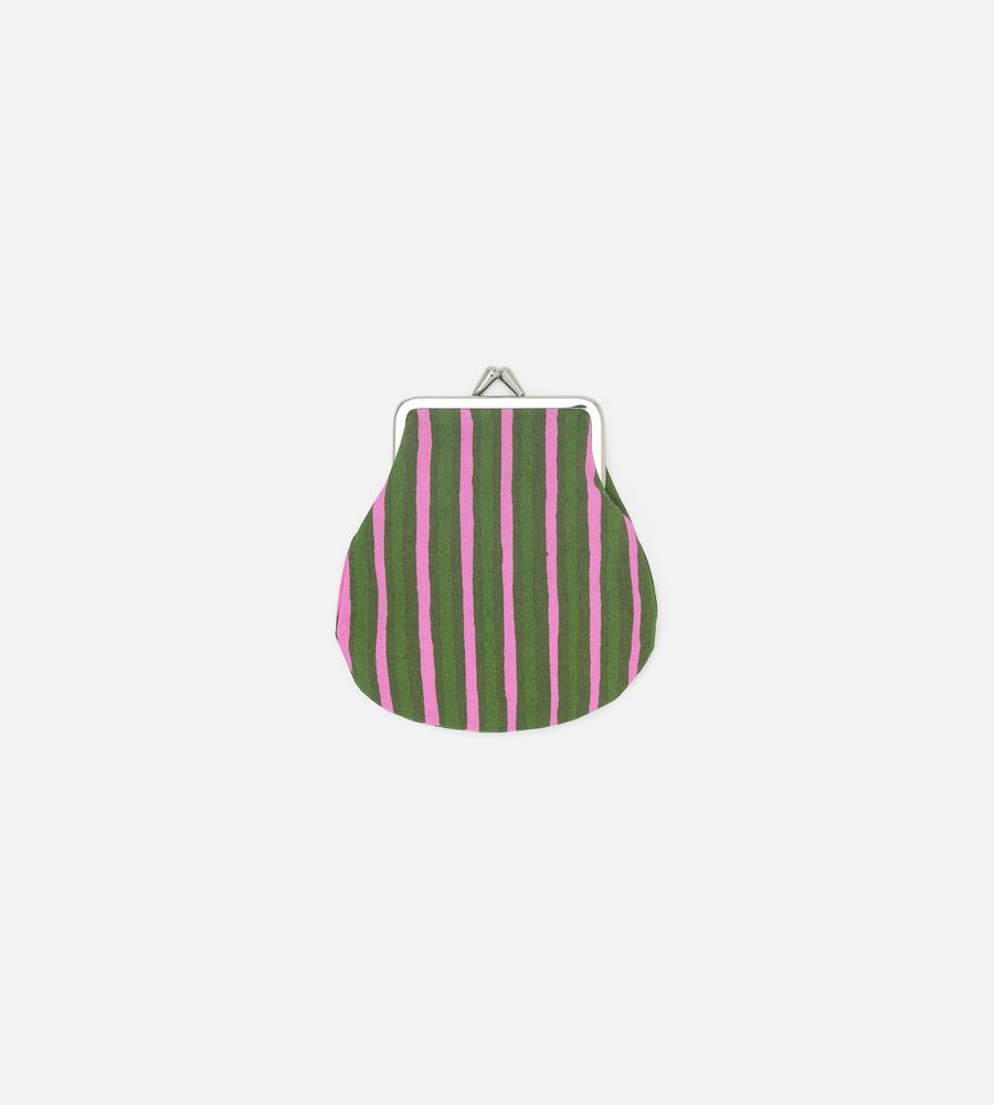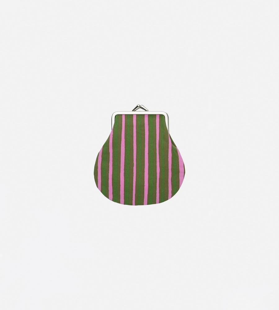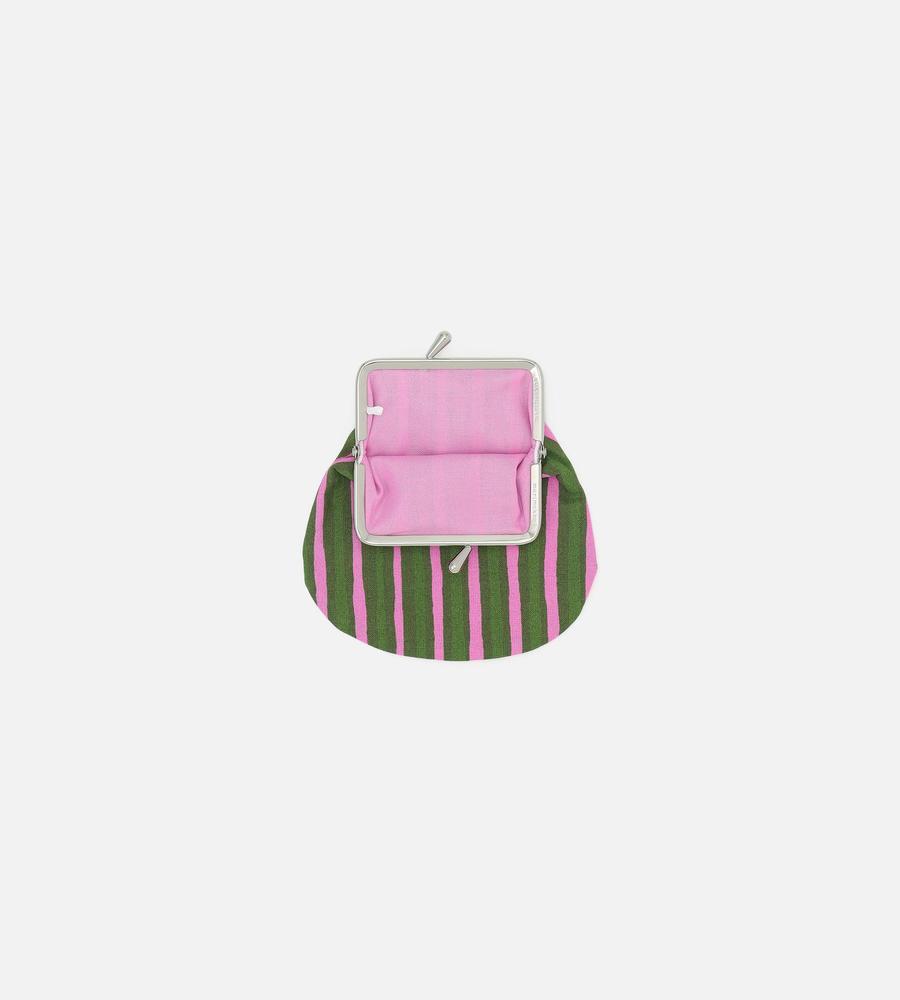 ビビッドなストライプ柄が見るたびに元気を分けてくれそうなポーチ。コロンとしたフォルムは、小銭入れとしても活躍します。気負わないのにどこかラグジュアリーなデザインで、長く愛用したくなる一品です。