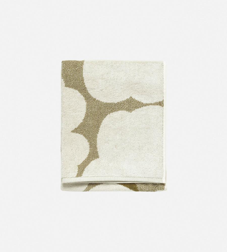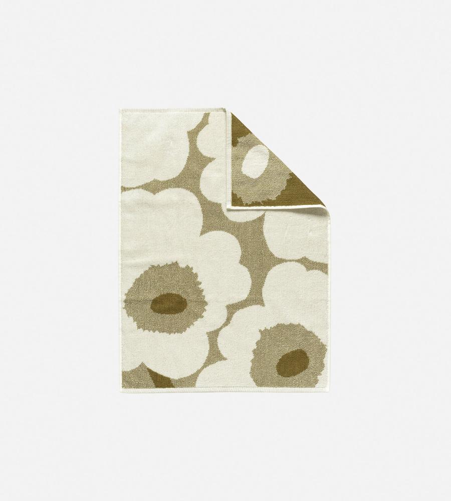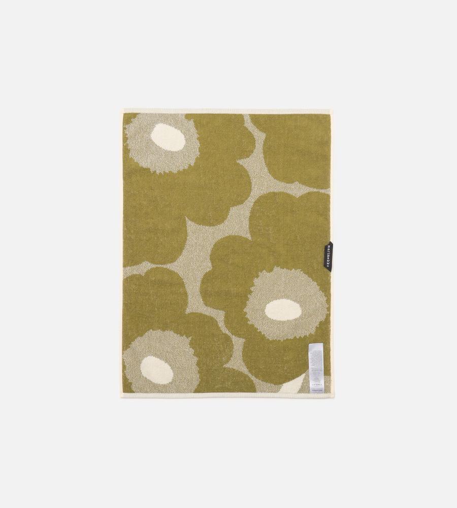 Marimekkoを代表するUnikko柄のハンドタオル(50x70cm)。フラワーモチーフの総柄が華やかなデザイン。吸水力が高く、肌触りの良いコットンのタオル地。裾にはロゴ刺繍がさりげなくスタイリッシュなデザインアクセント。裏側には様々な場所に掛けて使いやすい便利なロゴタグ付きです。