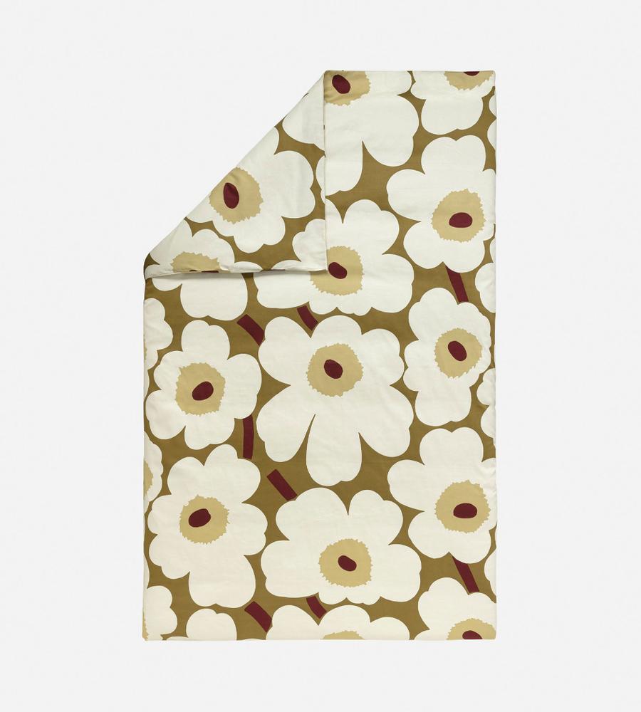 Marimekkoを代表するUnikko柄のデュべカバース(150x210cm)。全体にプリントされた大きなフラワーモチーフが華やかなデザイン。簡単に取り外し可能な便利な仕様。ベッドルームにぴったりな深みのある落ち着いたベースカラー。同デザインのピローケースと合わせてコーディネートするのもおすすめです。