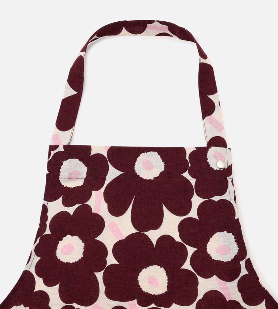 「花」を意味するUnikko(ウニッコ)柄は、Maija Isolaがデザインを担当しました。シーズンレスに活躍してくれるコットン素材のエプロン。フロントには、家事の合間にちょっとした小物を収納するのに最適なオープンポケット付きです。ネックストラップの長さは、スナップボタンで3段階に調整が可能です。