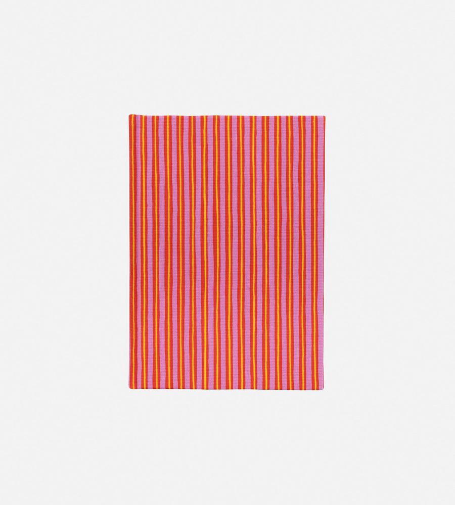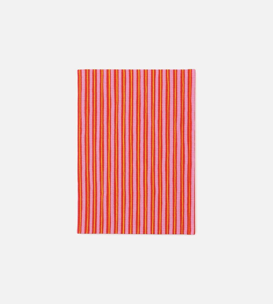 日常使いしやすいA5サイズのノートブック。明るいストライプの表紙が、見るたびに気分を盛り上げてくれそう。無地タイプなので、文字だけでなくイラストも描きやすいのが魅力です。