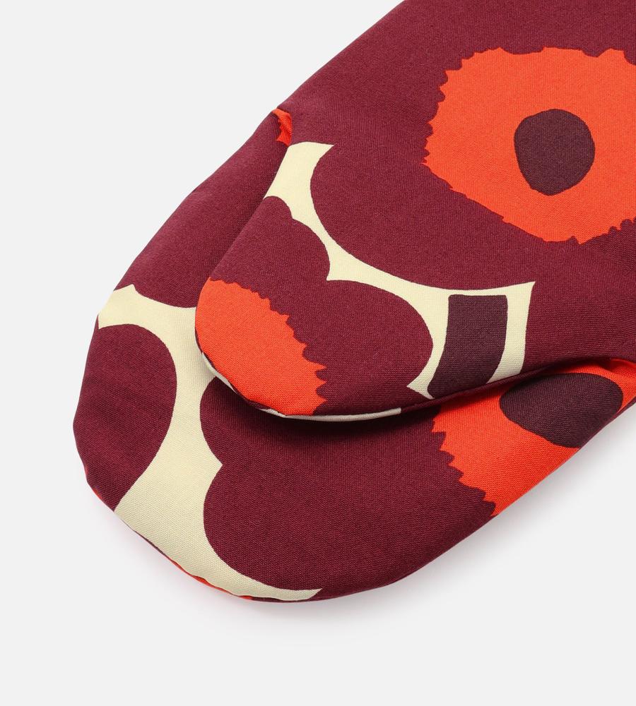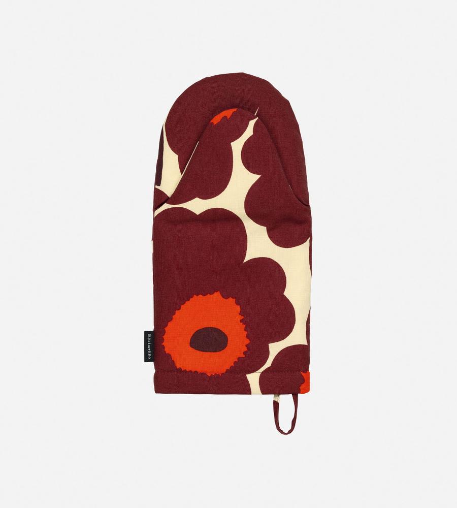 Marimekkoを代表するUnikko柄のミトン。キッチンのインテリアが華やぐ大きなフラワーモチーフが魅力。サイドにはブランドタグのアクセントがさりげなくスタイリッシュなポイント。吊り下げに便利なループ付き、しっかりと熱を防ぐ中綿入りで実用面も抜群。デイリーに活躍するアイテムです。