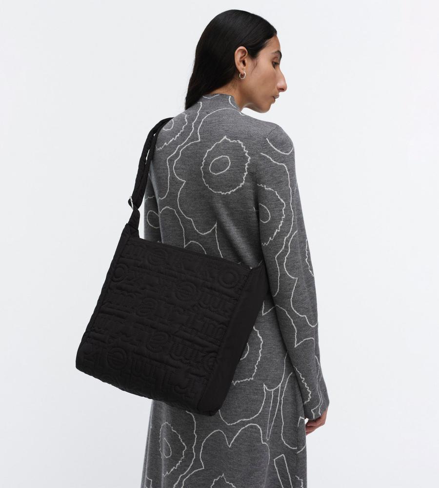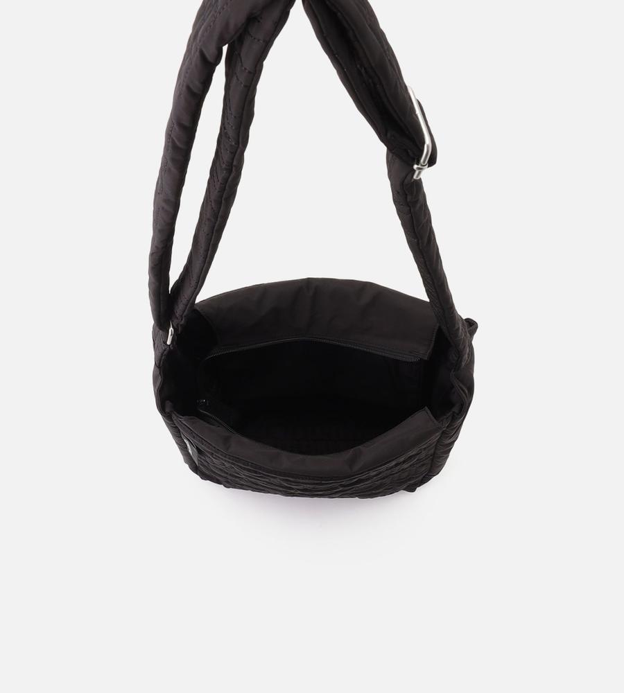 ブランドロゴをキルティングで表現した素材を用いたショルダーバッグ。ロゴのモダンさに呼応するようなスクエアフォルムで、中性的な空気感に仕上げています。マチがしっかりあるため、収納力も抜群。ジップで中身をしっかりガードできます。ストラップもキルト仕立てで優しい肌当たり。肩に優しくフィットします。