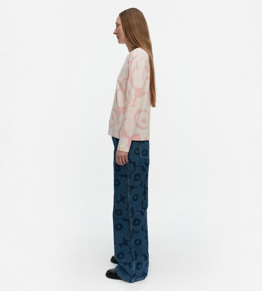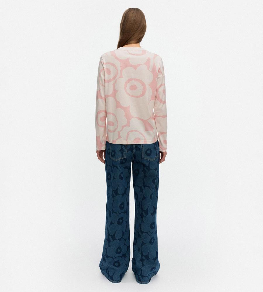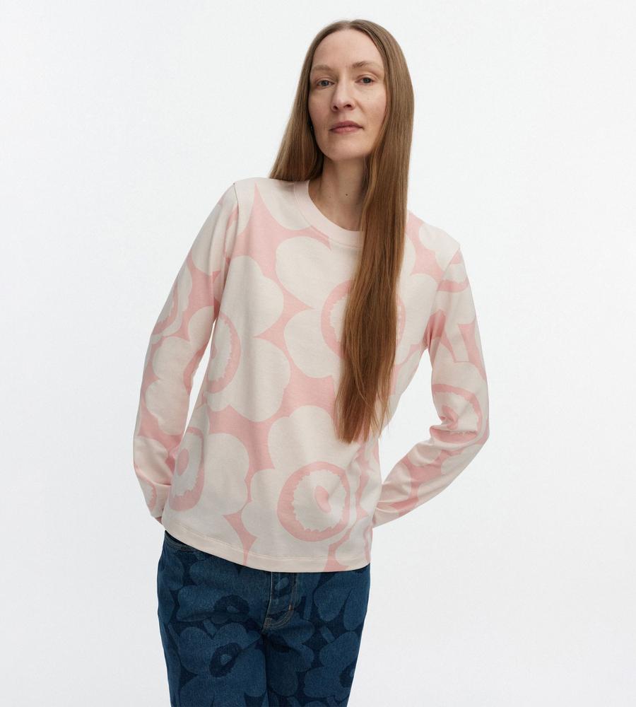 フェミニンにもモダンにもコーデできるUnikko柄カットソー。着こなしの主役に、レイヤードのインナーにと幅広く活躍します。すっきりとしたシルエットも、着回しやすさのポイントに。
