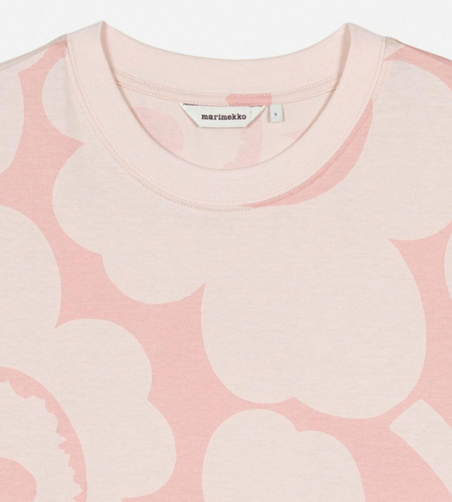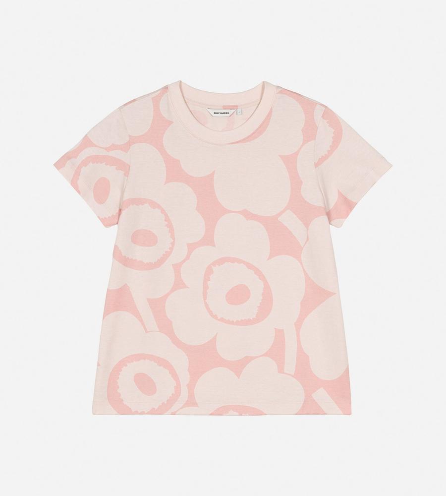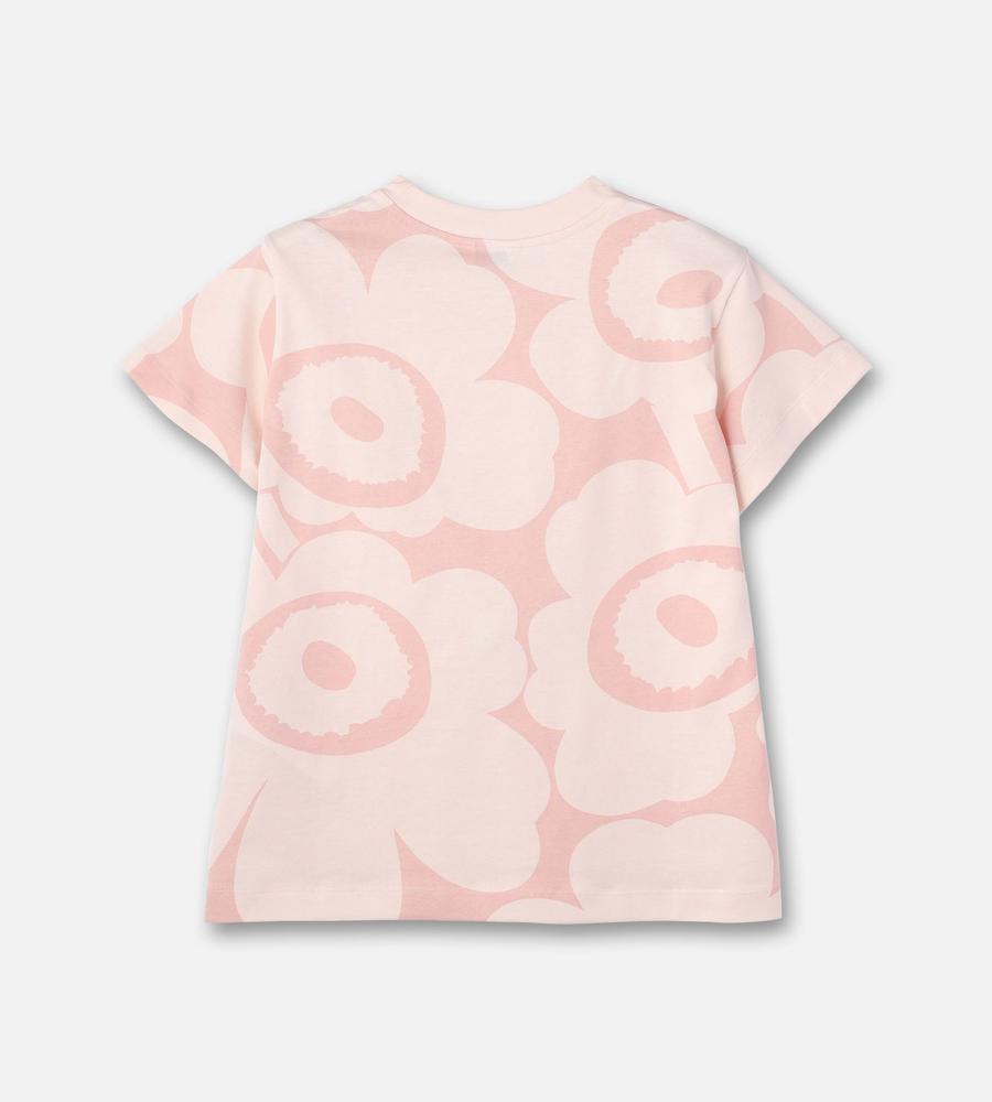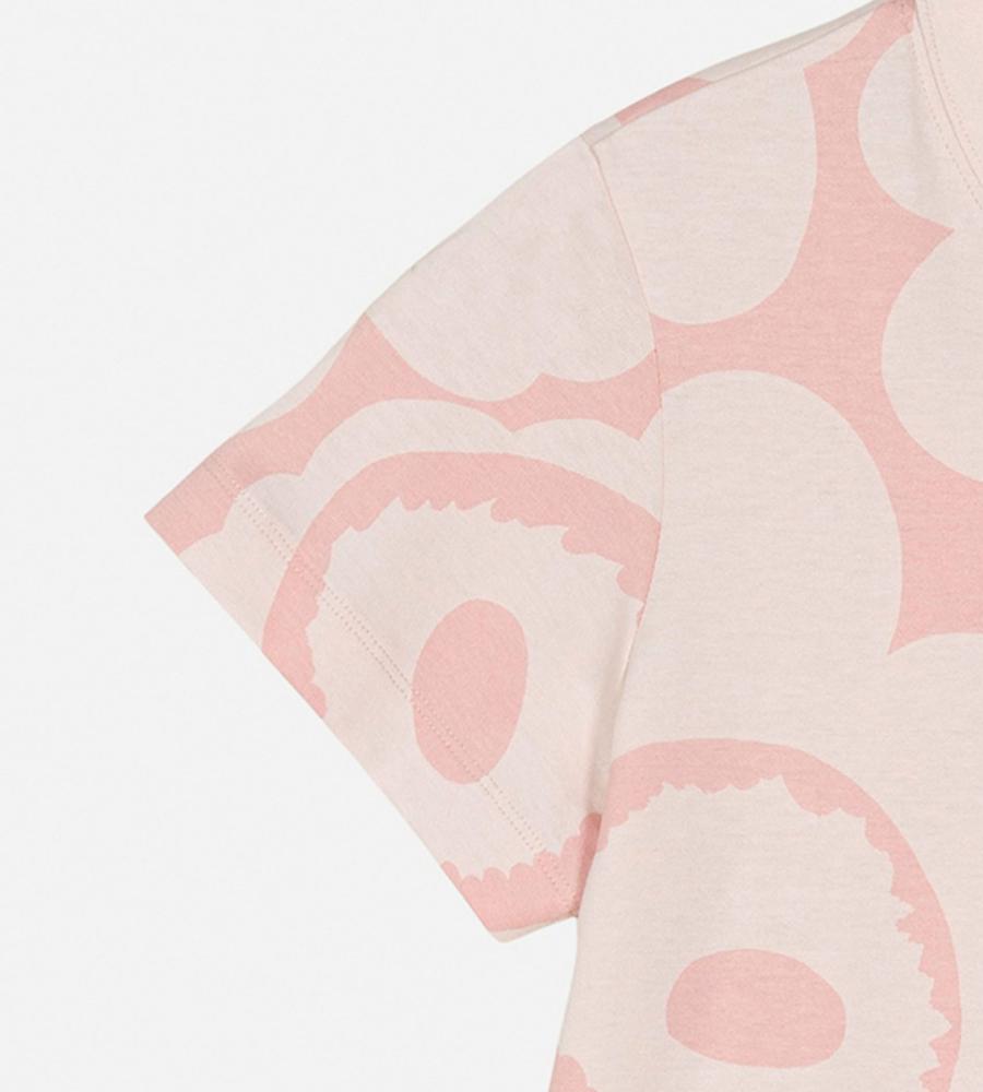 いつもの着こなしに明るさを加味してくれるUnikko柄Tシャツ。コーディネートの主役に、レイヤードのインナーにと幅広く活躍します。すっきりとしたシルエットも、着回しやすさのポイントに。