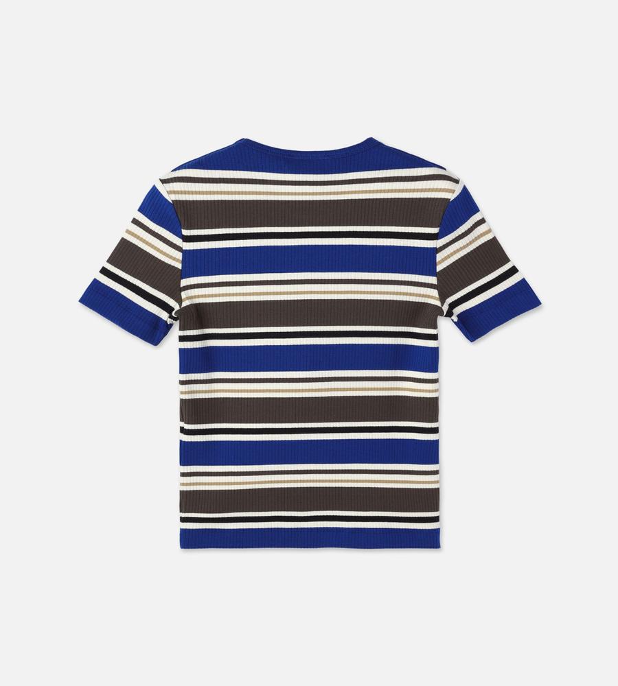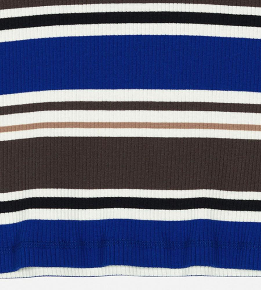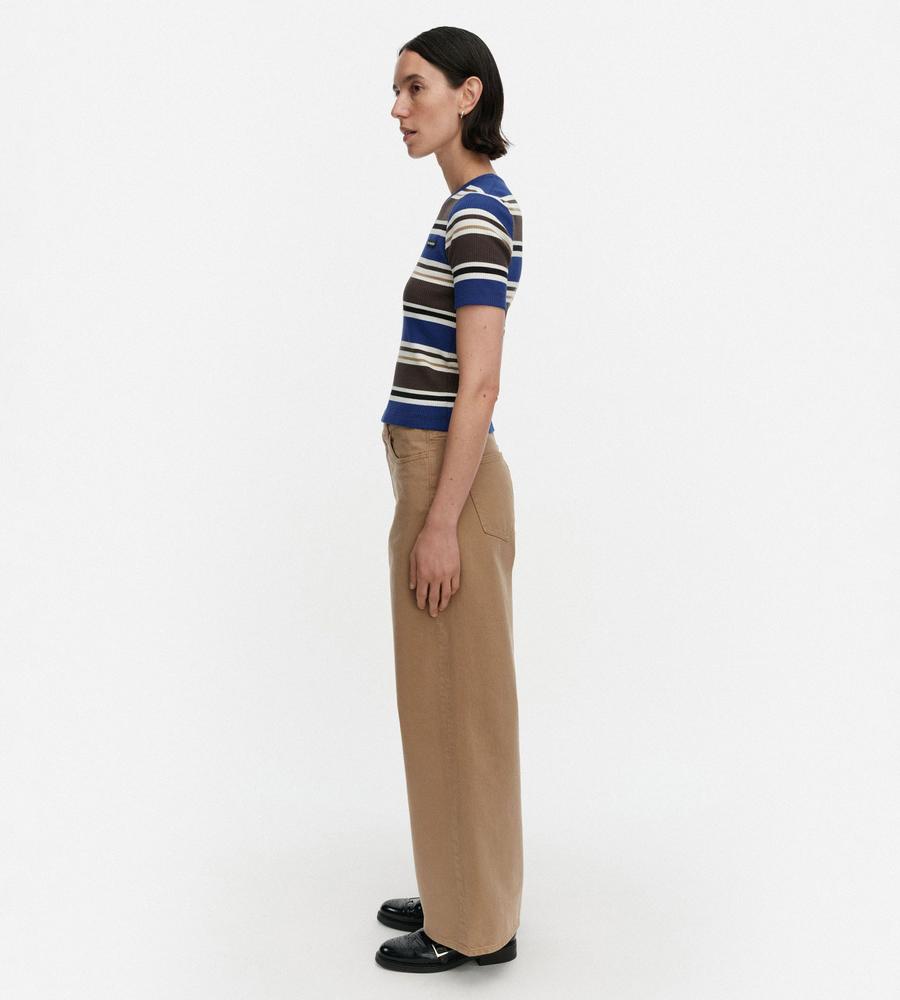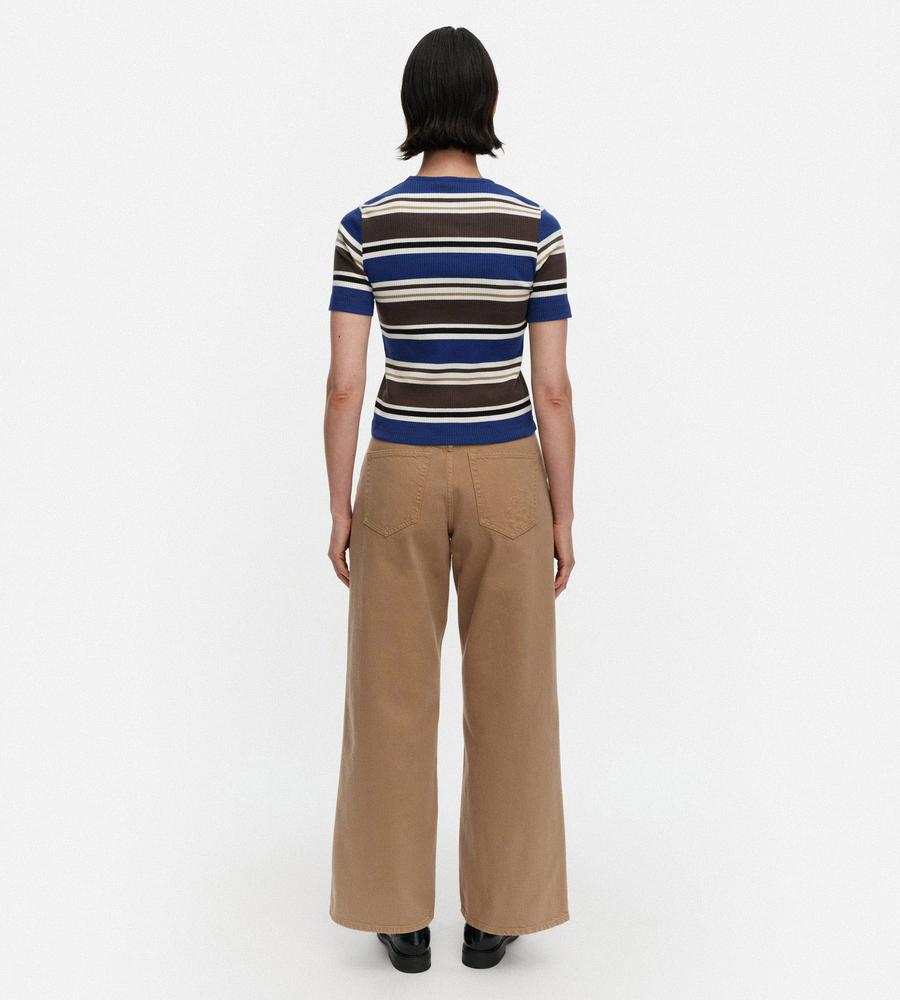 スタイリングのアクセントになるHelviパターンのコットンリブジャージーカットソー。ストレートフィットシルエットですっきりと着こなせるため1枚でももちろん、インナーとしても活躍します。左胸にはマリメッコのロゴ入りラベルを添えてワンポイントに。