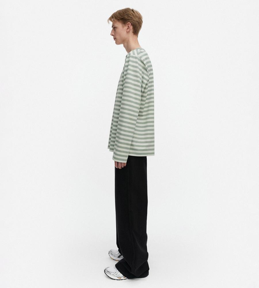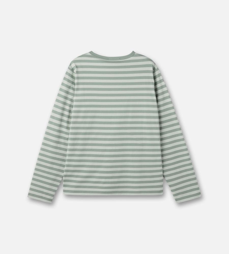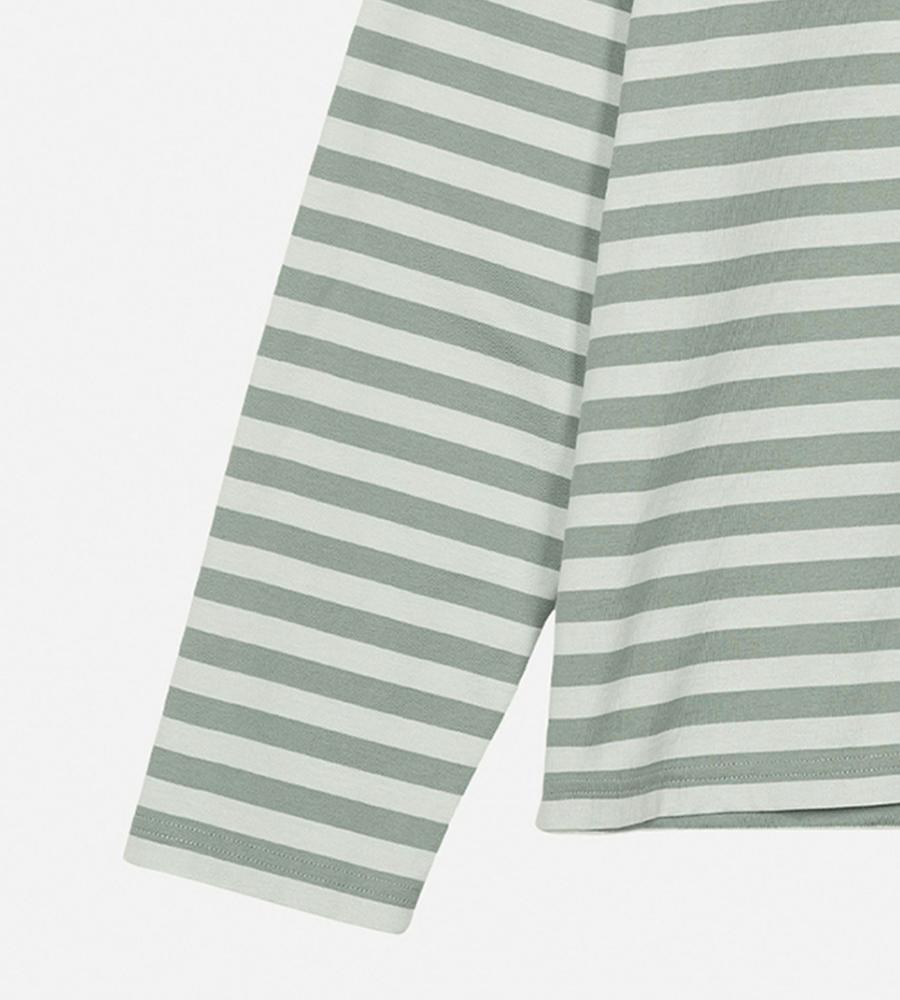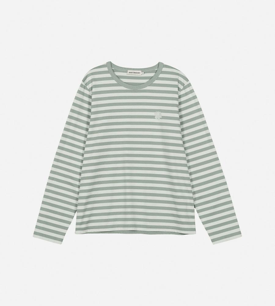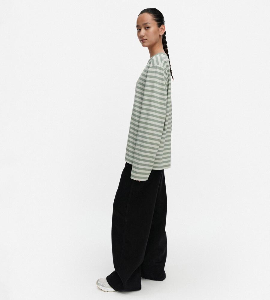 細めのボーダー柄がコーディネートのアクセントになる長袖カットソー。Unikko柄のモチーフを左胸にあしらった、さりげなくスタイリッシュなデザインアクセント。リラックスフィットのユニセックスなサイズ感、長めの袖丈も魅力です。肌触りに良いコットン生地で、着心地も抜群。デイリーに活躍するアイテムです。