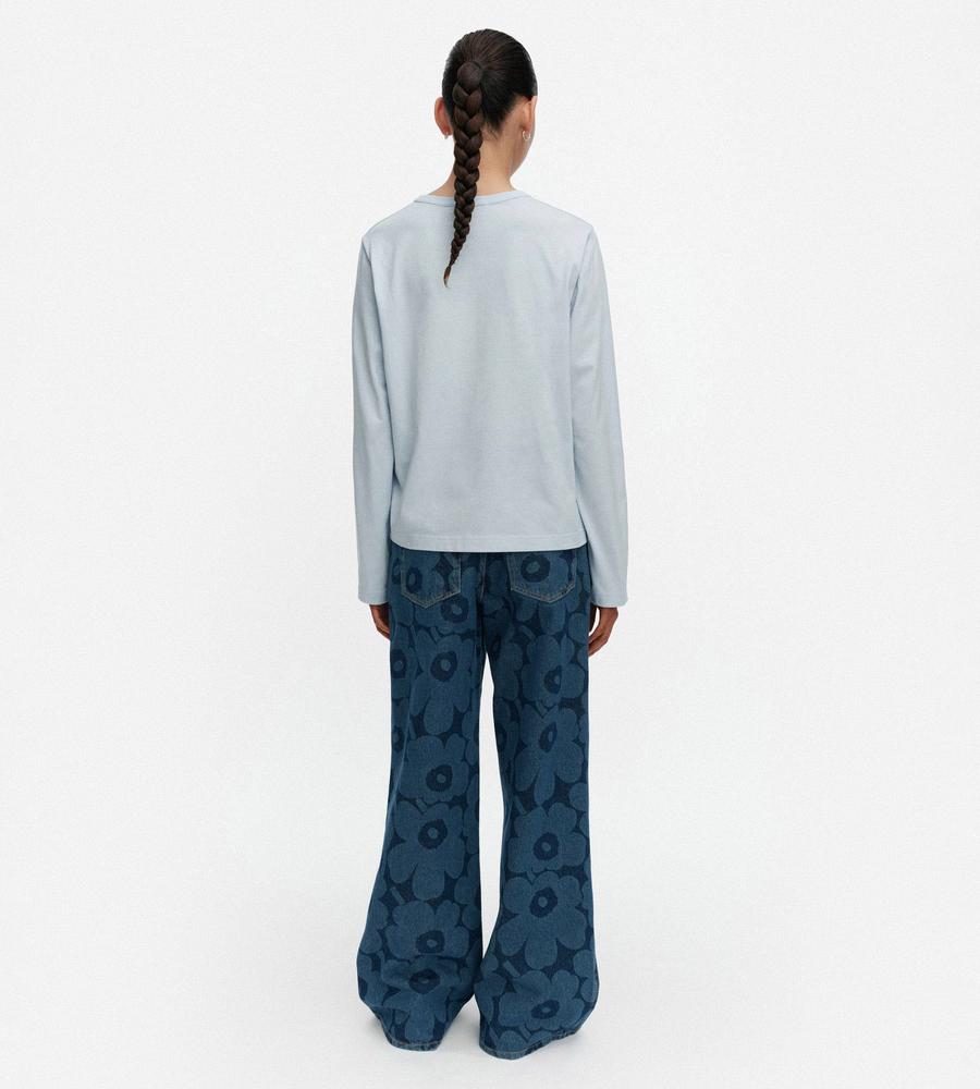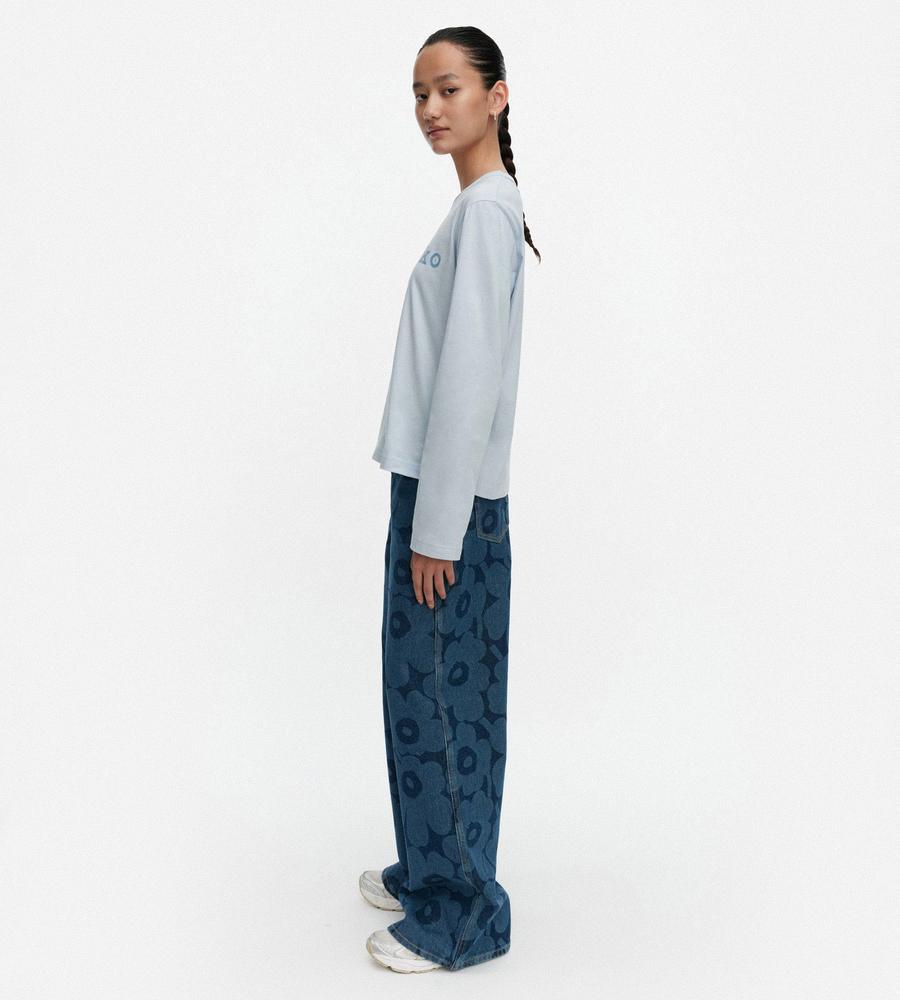 Marimekkoのロゴをあしらった、Efekti Logo Placementのカットソーです。シンプルな同系色のロゴプリント柄で、1枚着はもちろんインナーとしても使いやすくデザインしました。トレンド感のあるオーバーサイズ仕様、ほど良くハリ感のあるコットン100%素材でシルエットもきれいです。