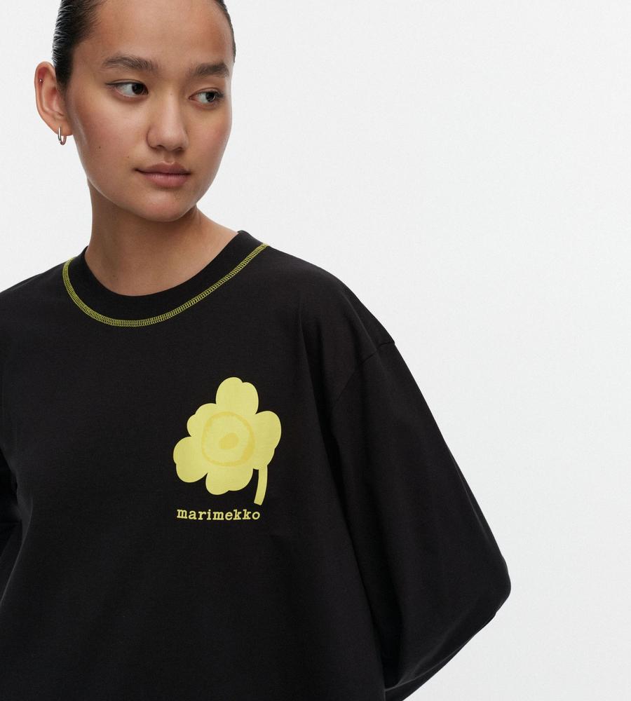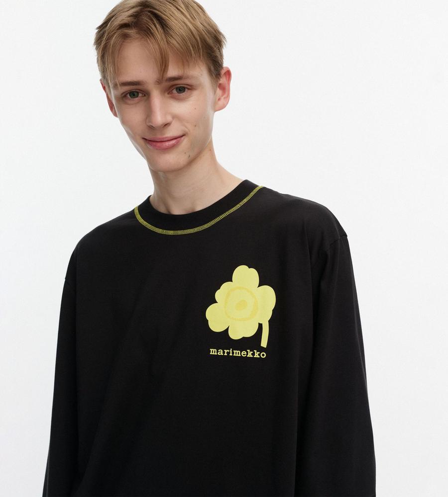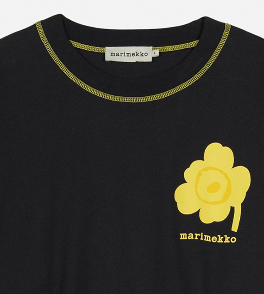 ビビッドなUnikko柄をアクセントに添えたカットソー。適度なゆとりのあるシルエットで、リラックスした着心地に。シンプルなようでしっかり存在感を演出できる一枚です。